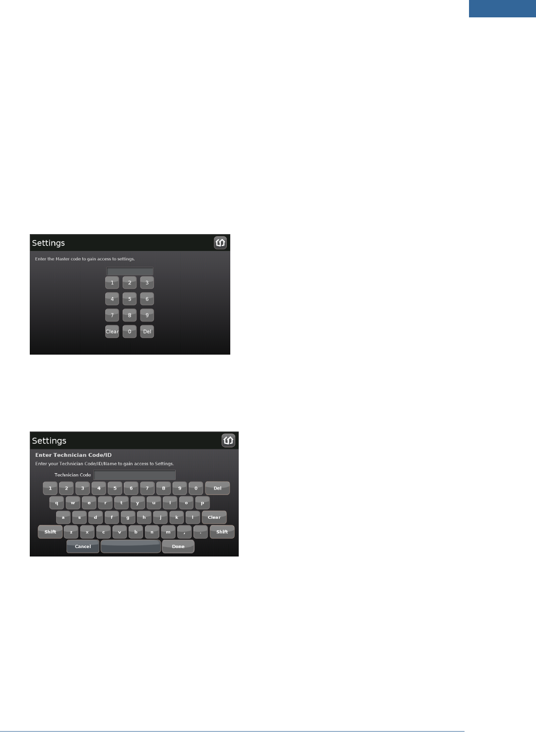 Settings widget with an Installer keypad code, they have access to the same operations as well other