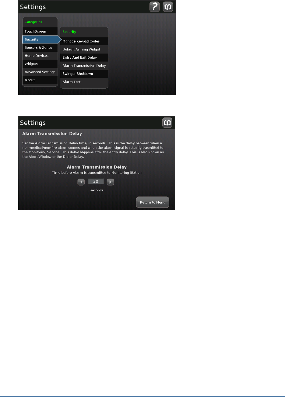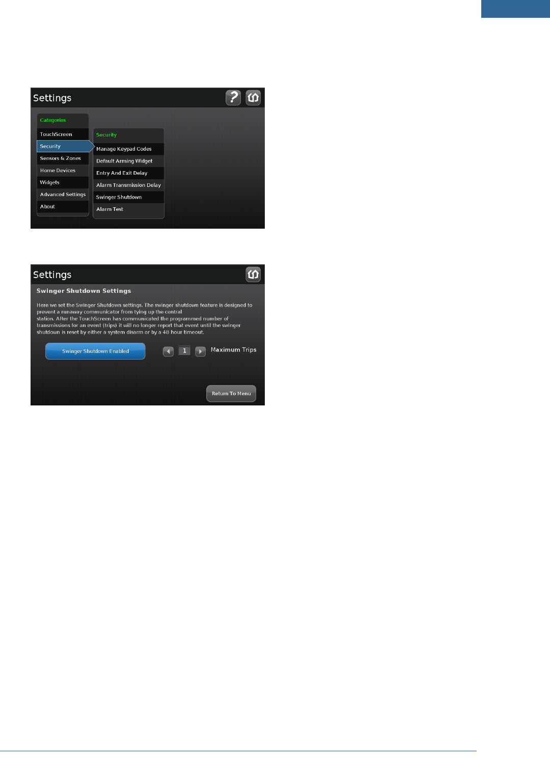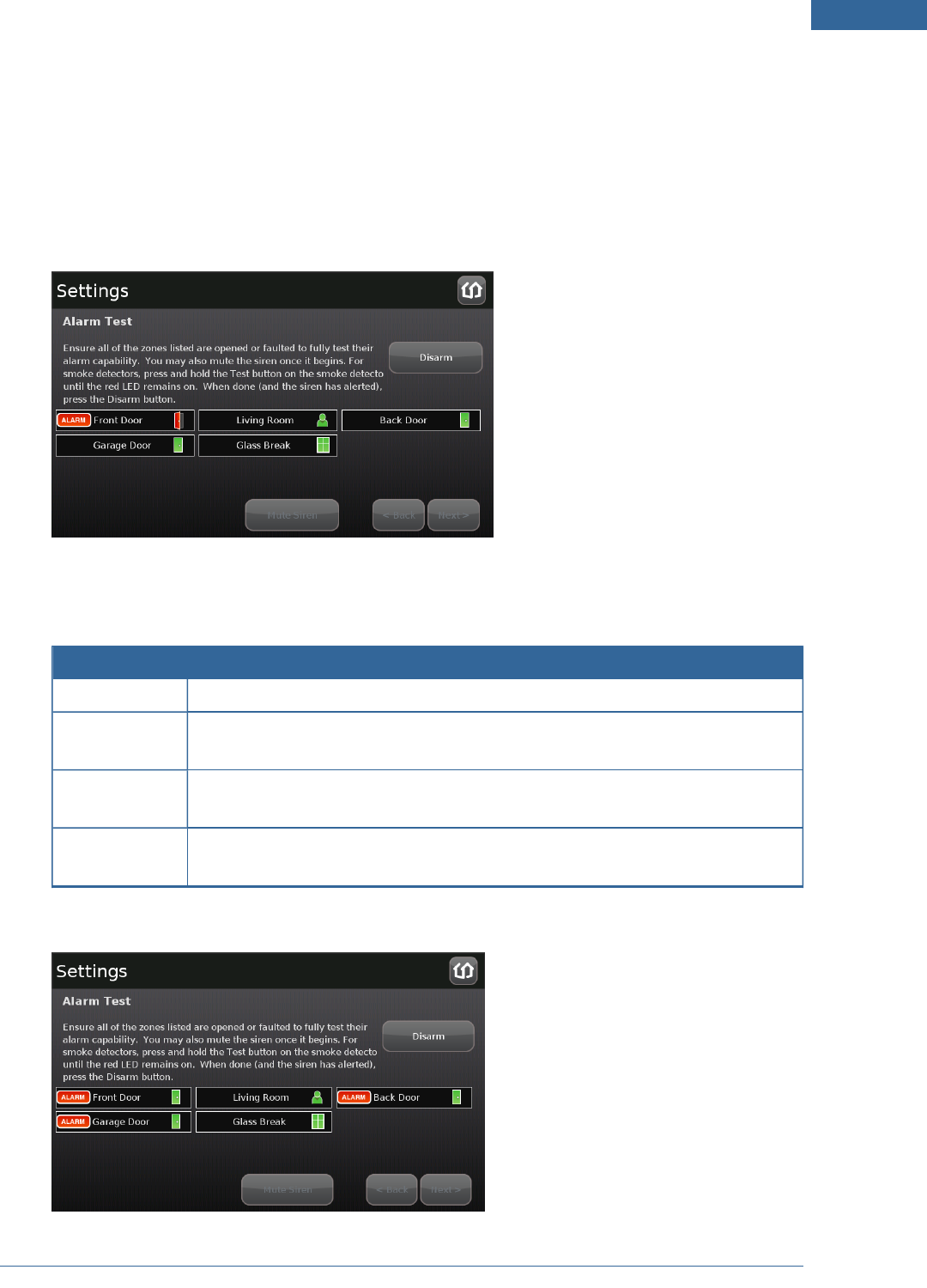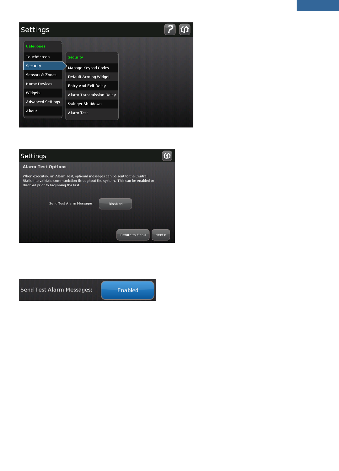 2. From the Installers Settings widget (see page 43), tap Security ®Alarm Test.
