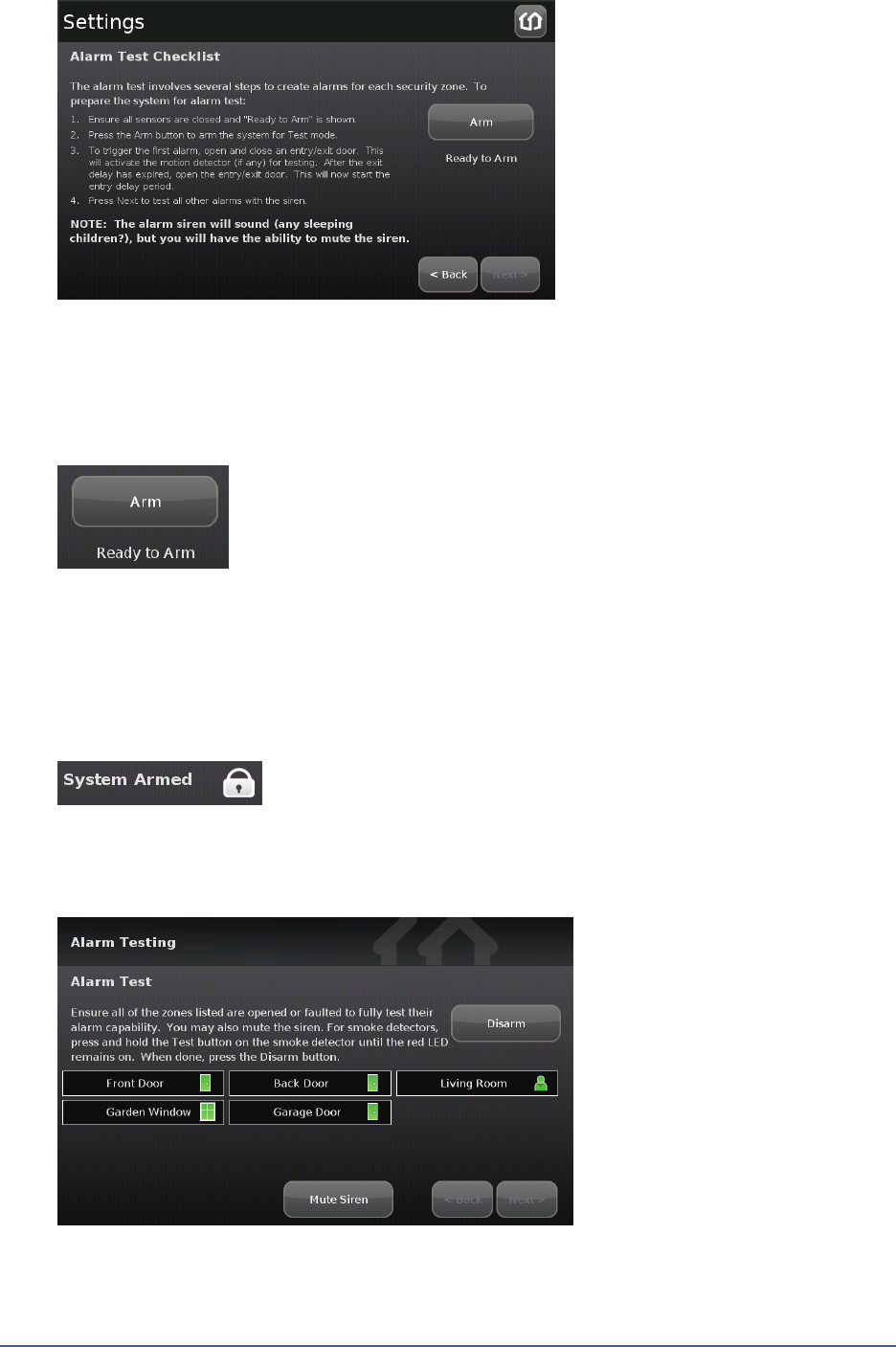 When the security zones are ready for testing, “Ready to Arm” is displayed under the Arm