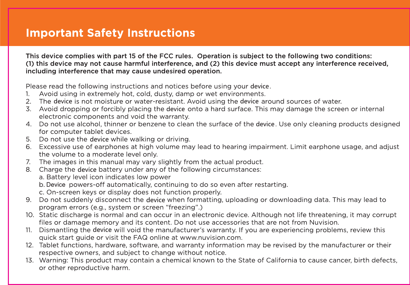 all persons regardless of age or health. The SAR limit of USA (FCC) is 1.6 W/kg averaged. Device types: 13.3’’