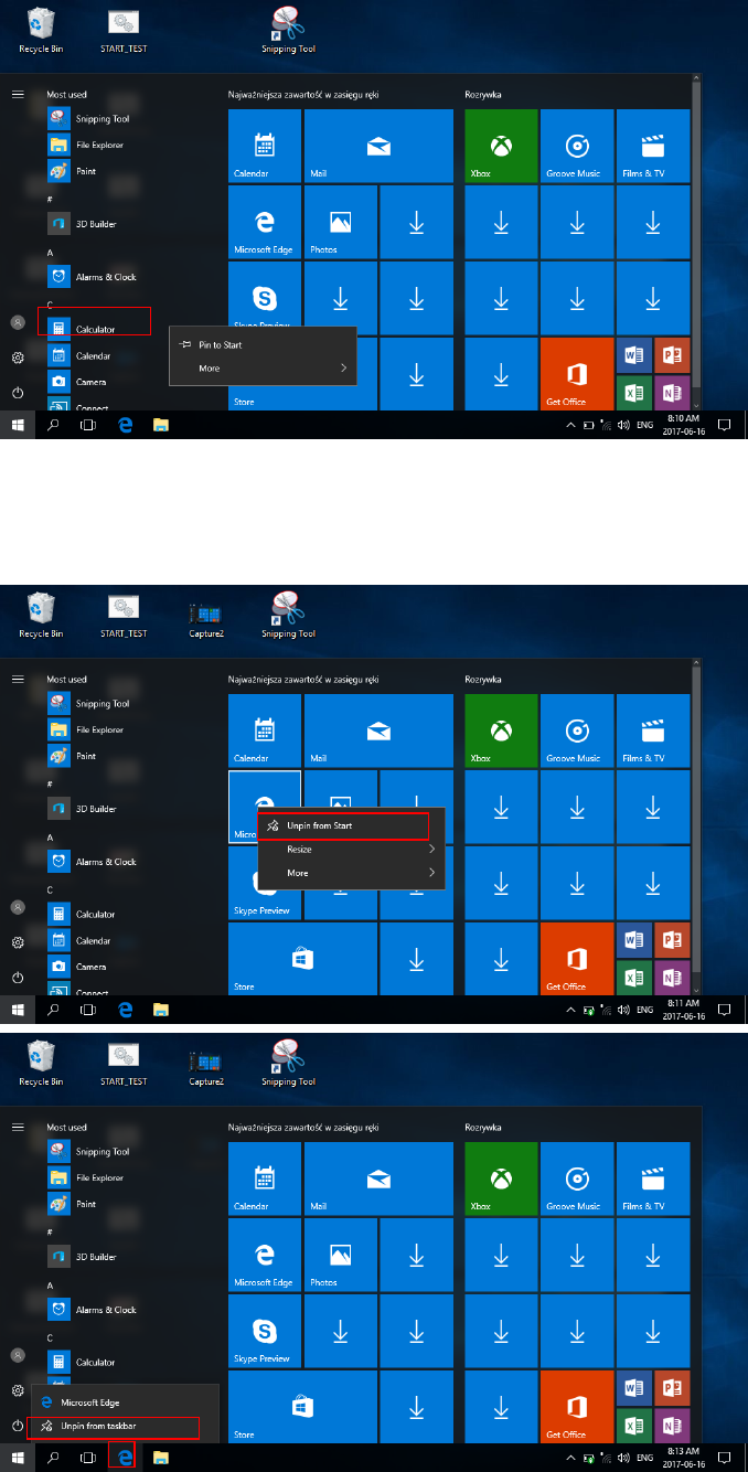 Right-Clicking the application, (2) Click the “Unpin from Start” or “Unpin this program from