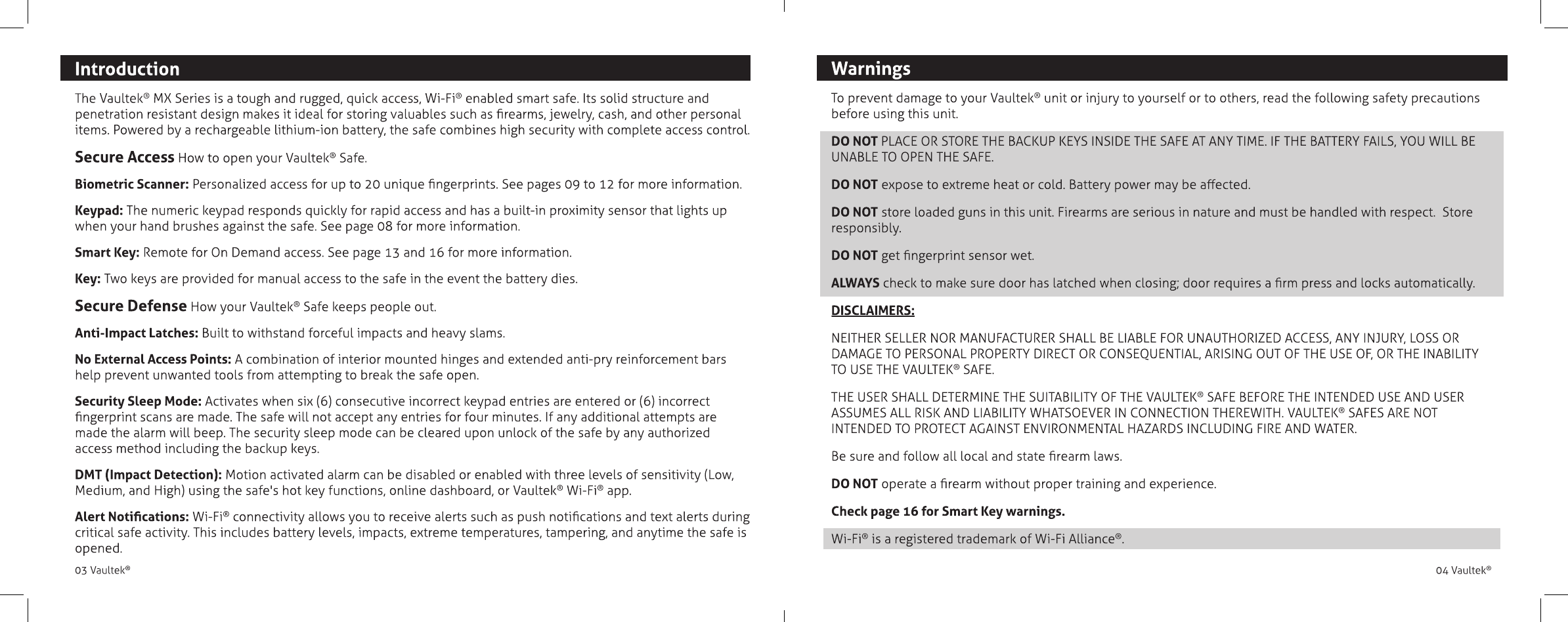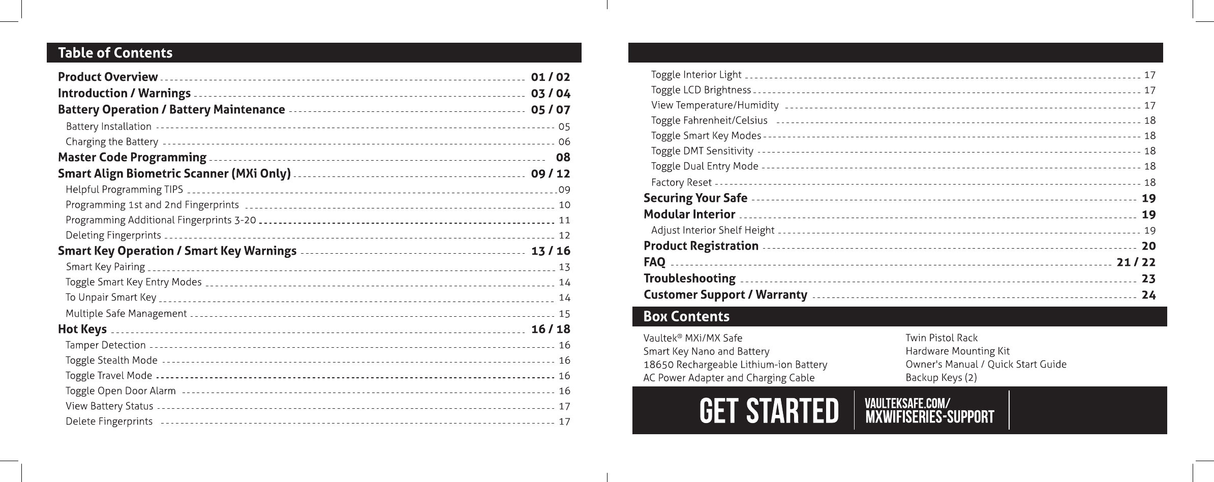 Vaultek Safe PRO-NMXI01 NMXi/NMX safe User Manual