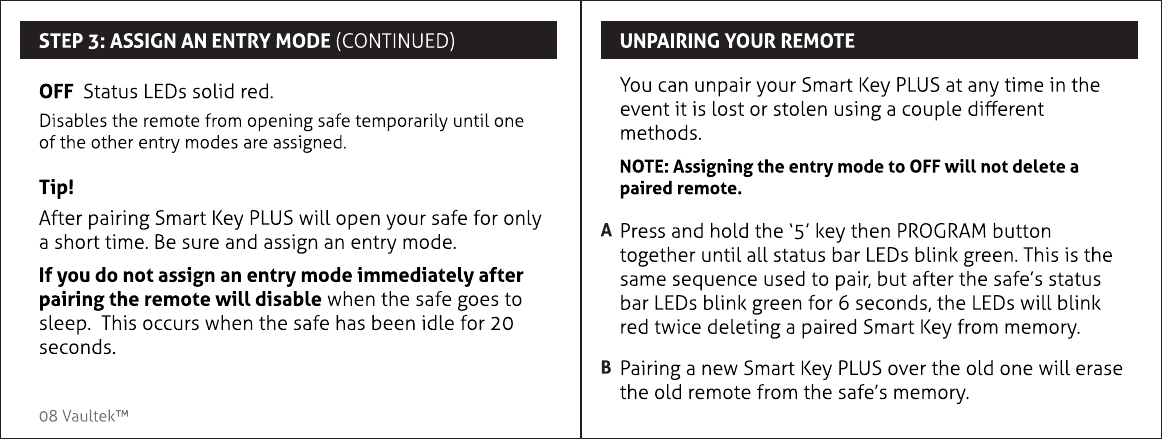 Vaultek Safe PRO-VSKP01 Smart Key Plus User Manual 15 VSK UserMan r3