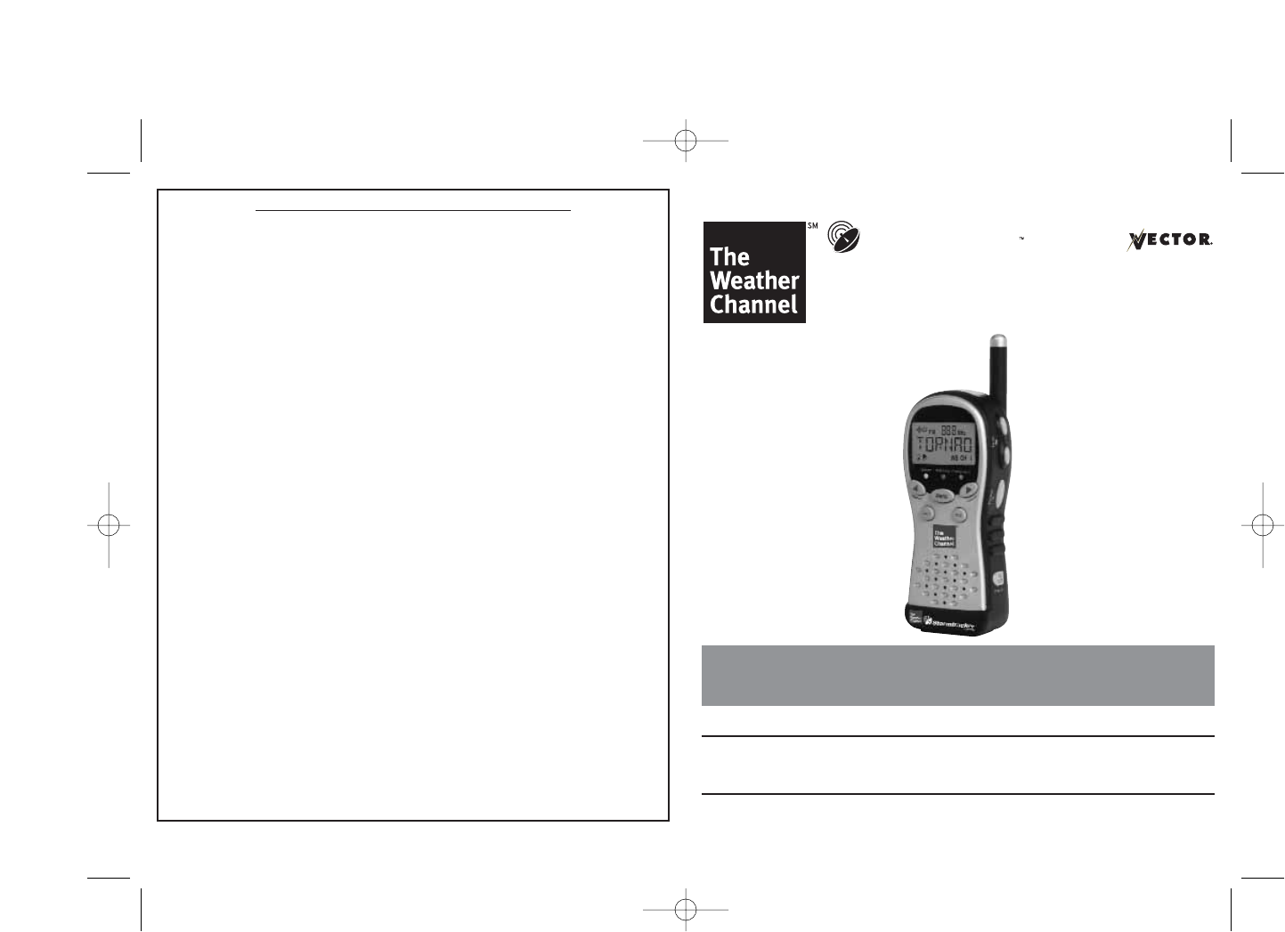 as Model and “FM Weather Alert Radio” as Product Type. All Vector products must be registered within 30 days of