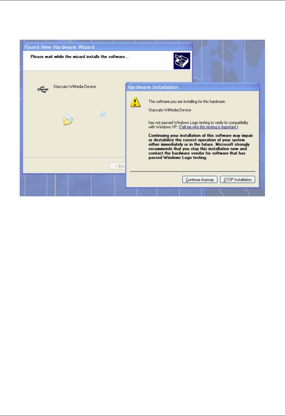 If XP displays a message warning the user that the driver has not undergone Windows Logo testing, Click “Continue Anyway” to