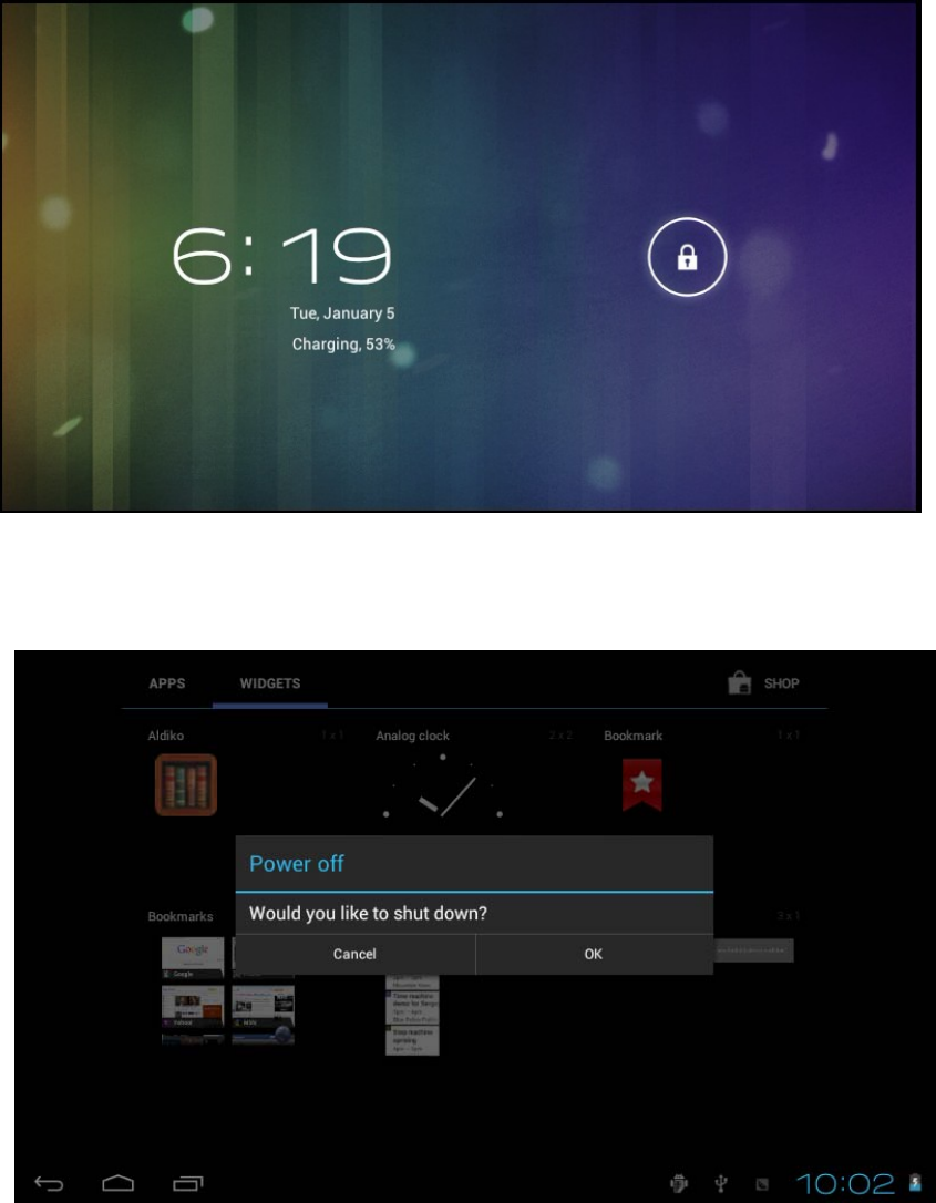 Press and hold the Power button for 3 seconds, it will popup shut down window. Tap “ok” to confirm the power