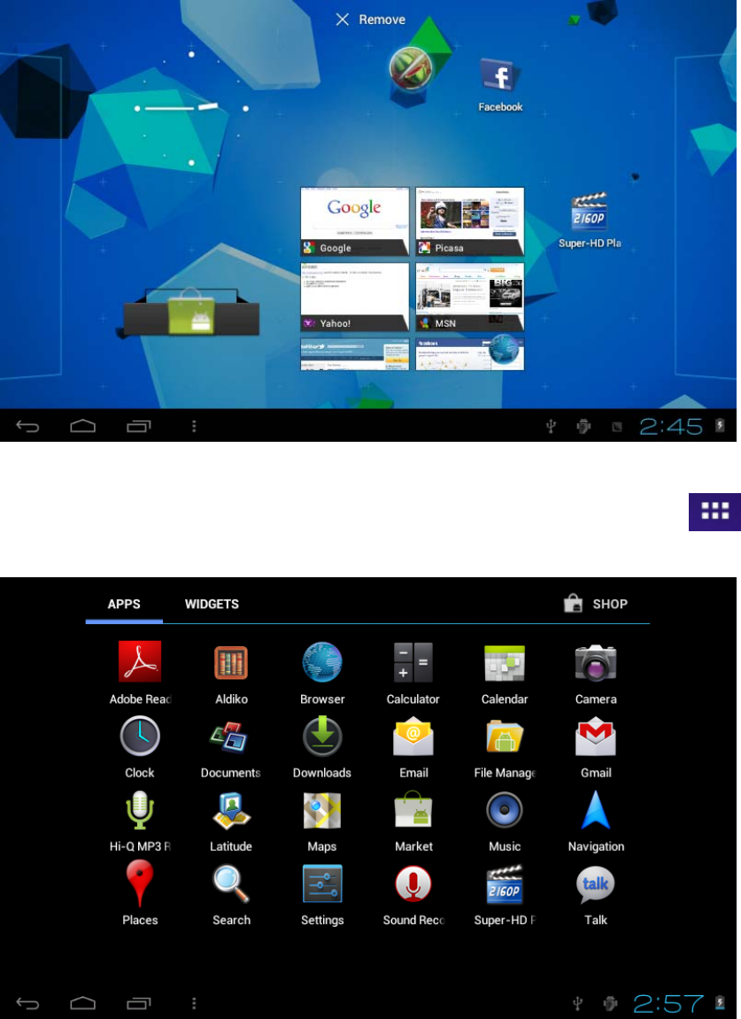 The second most used portion of your UI is the apps menu, accessed by tapping the apps icon on the