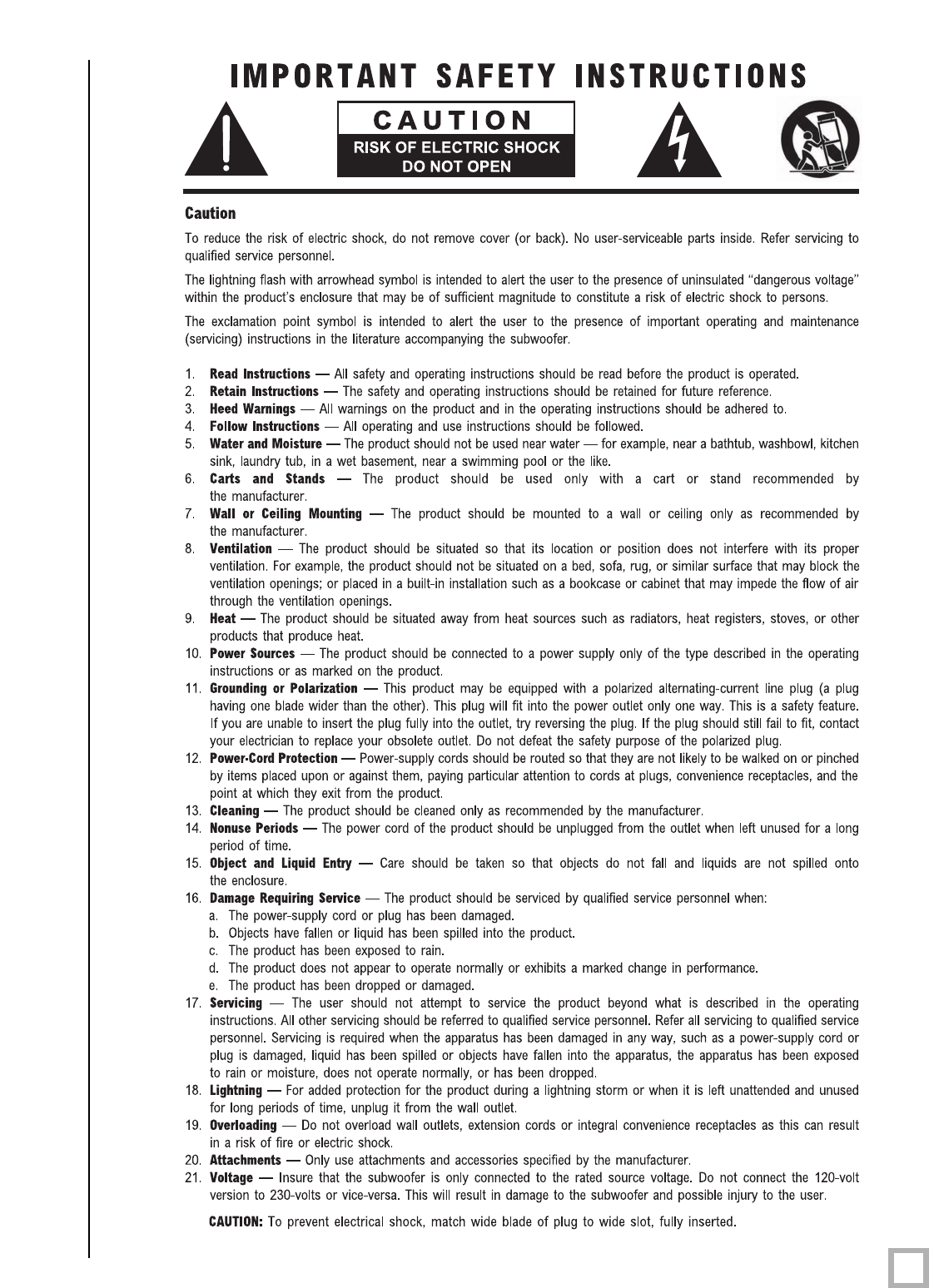 the state-of-the-art in low frequency reproduction. Please, read and follow the instructions below