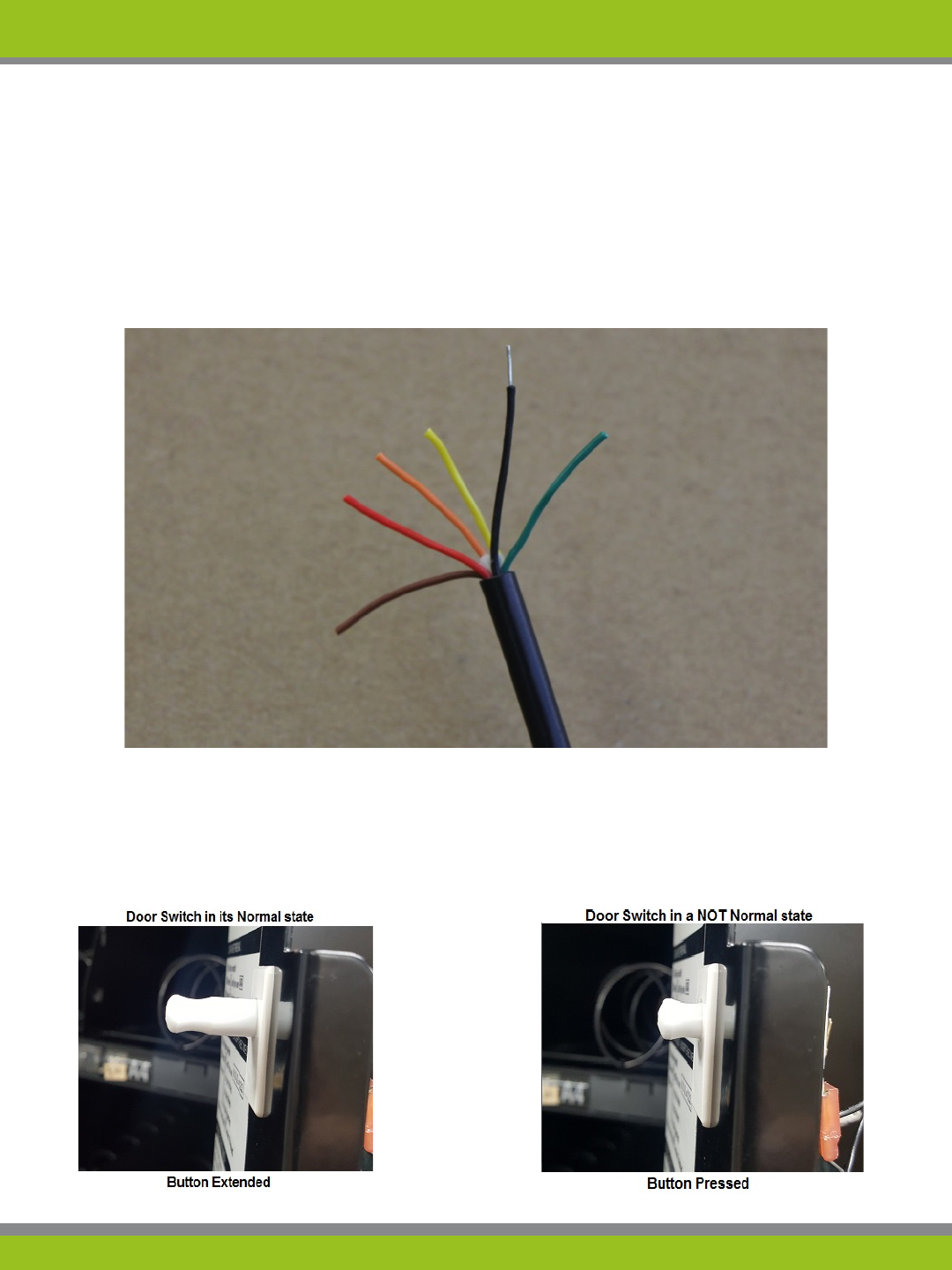 The cable used to connect the device to the VM door switch has 6 wires providing 3 separate functions; each