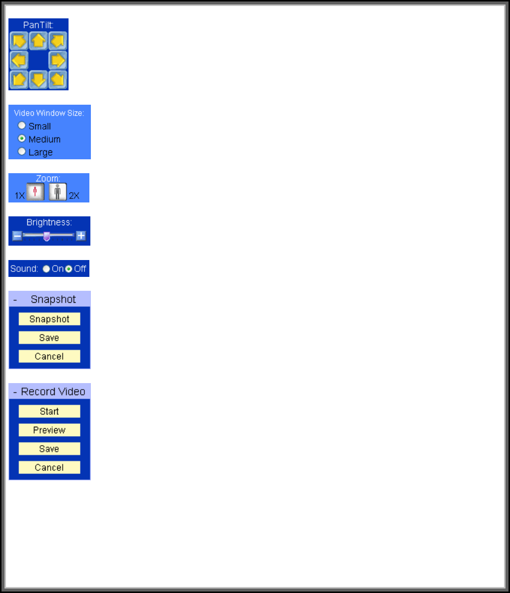 The built-in pan and tilt, live streaming audio, and snapshot/video capture functions can all be controlled directly
