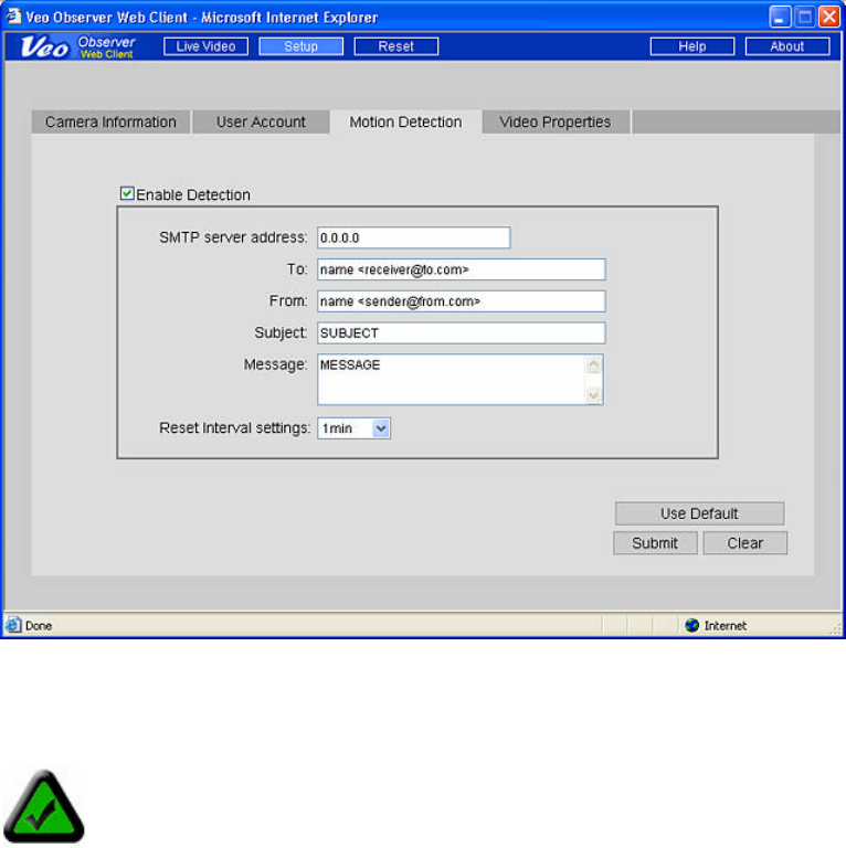 from the camera’s on-board homepage. Capability for motion detection with e-mail notification may be added by