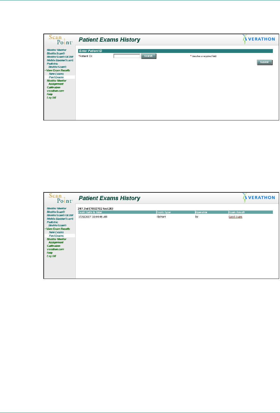 Figure 17. Patient Exams History screen - Search by Patient ID