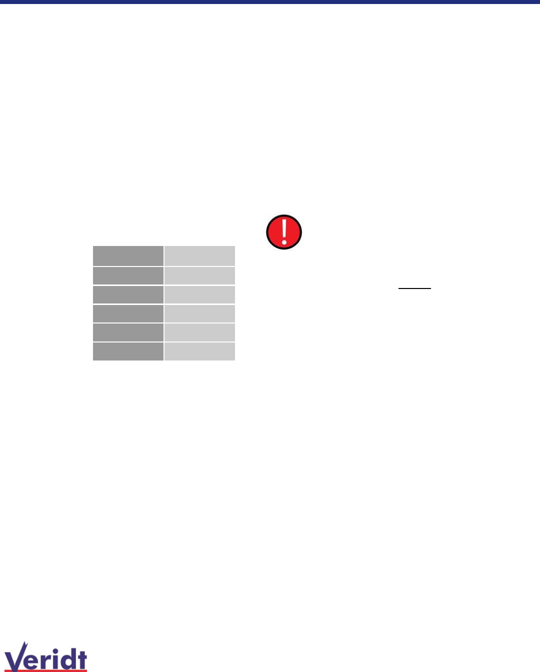 IMPORTANT! Changes or modifications not expressly approved by Veridt, Inc could void the user’s authority to operate the