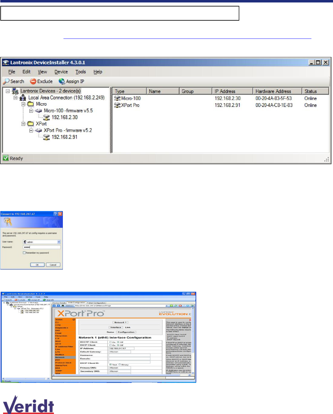 2 After downloading the Lantronix Device Installer, install and run it on a computer on the same network as the EWAC board.