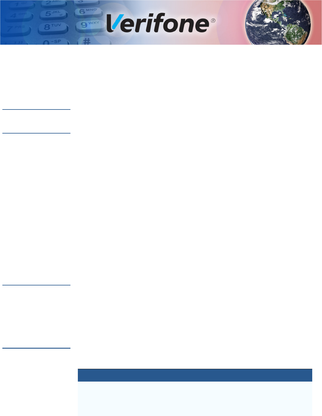 Comments? Please e-mail all comments on this document to your local Verifone Support Team.