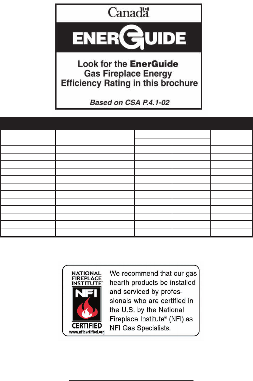 Fireplace Efficiency (%) Fan-OFF Fan-ON (AFUE%)