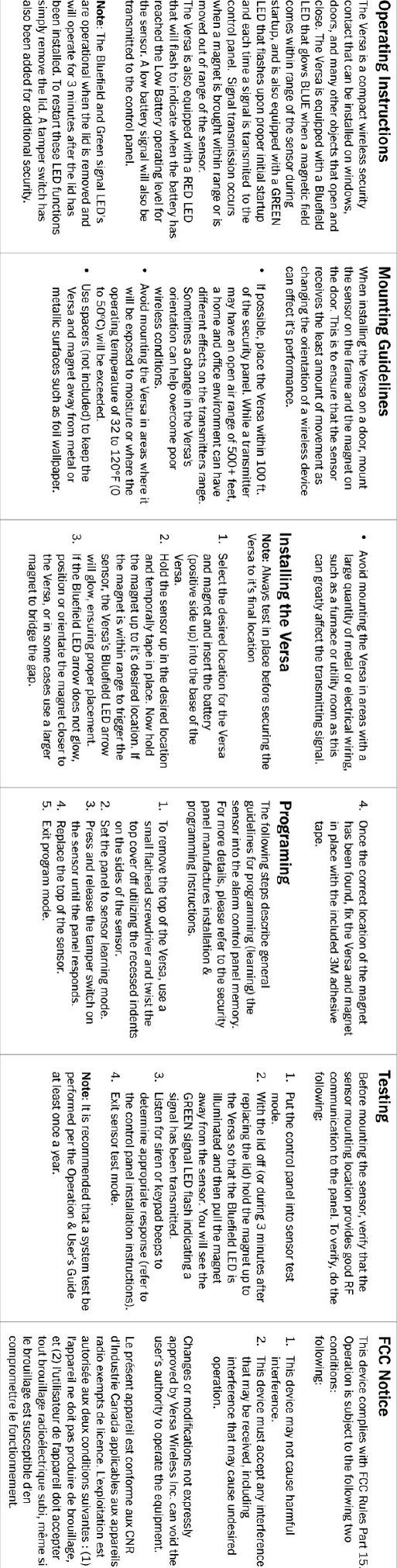 Versa Wireless VERSAG Intrusion Detector Sensor User Manual Full page fax print