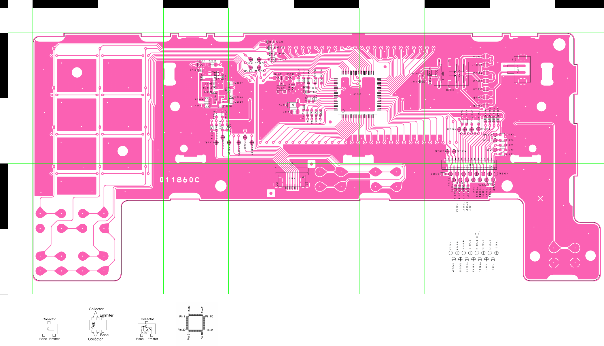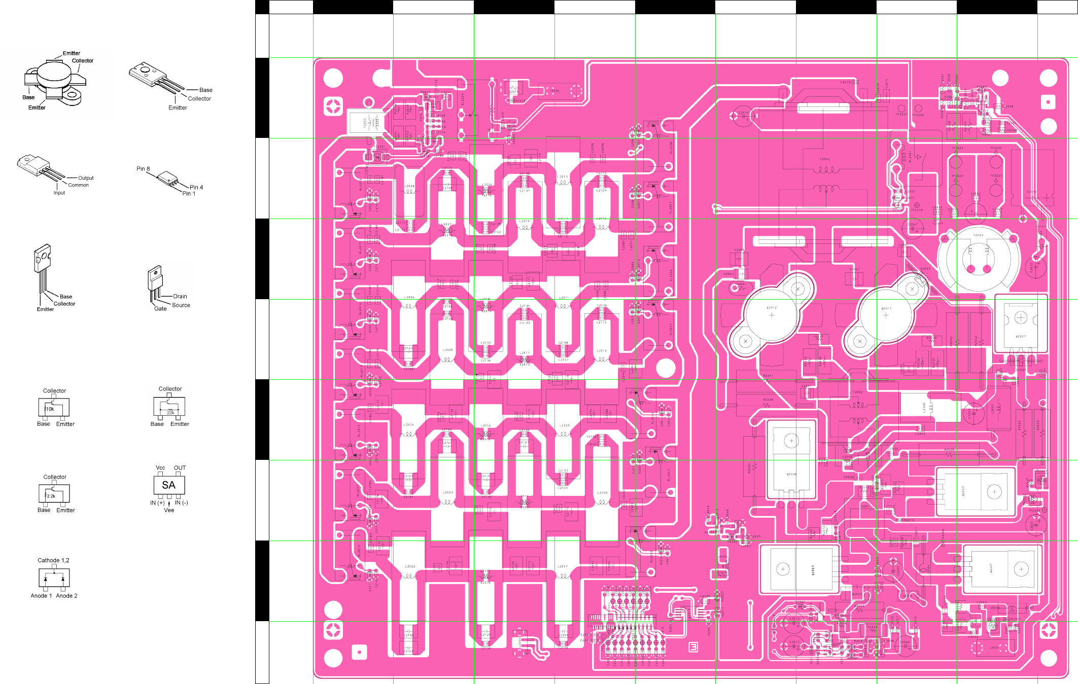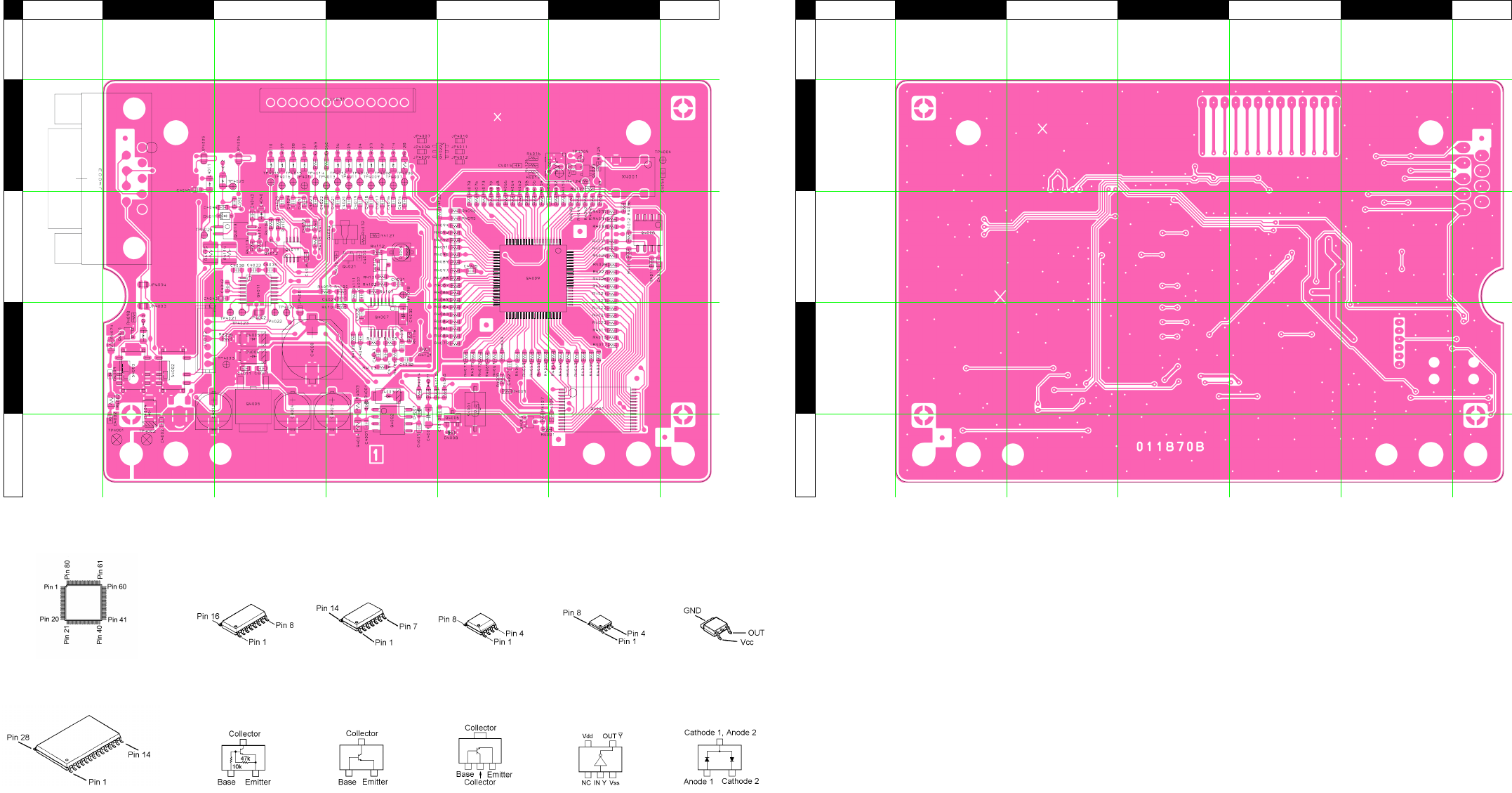 Two PCB layout diagrams are provided for each double-sided board in this transceiver. Each side of the board