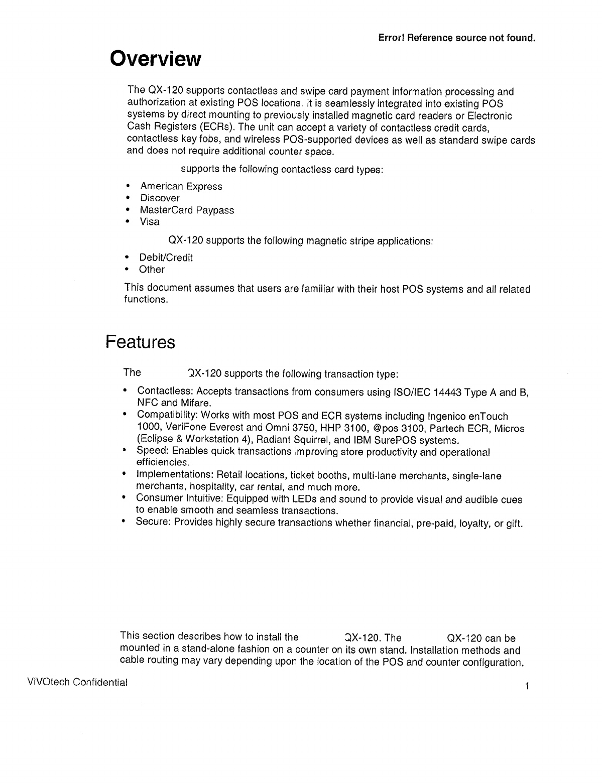 ViVOtech QX120 Low power transmitter wireless Card reader User Manual submitted to UL 6 9