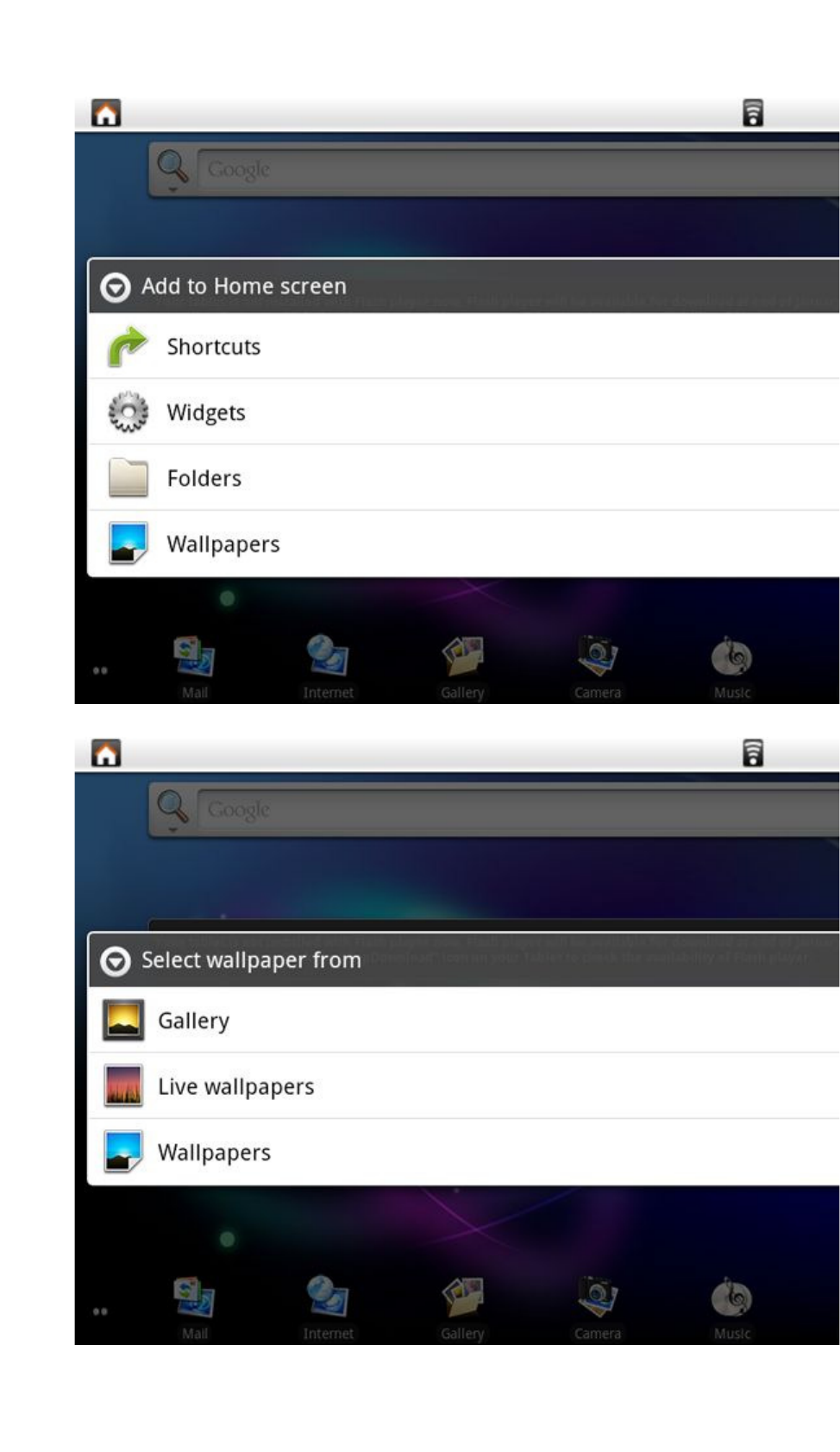 3.3 Progra ms / Settings / Mail / Wallpaper s