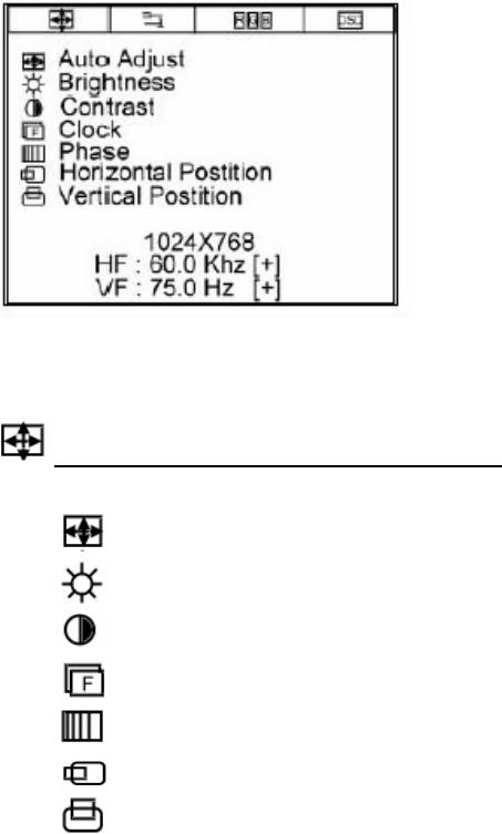 OSD Menu Contrast, Brightness, Auto Adjust, Clock, Phase, H-Position,