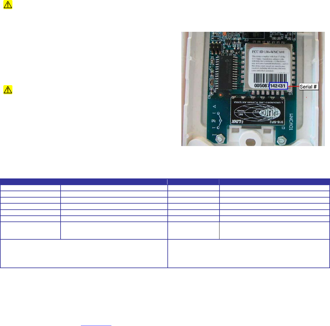 3. Record Serial # (Transmitter ID#) from back of device. Location of the serial number is shown below.