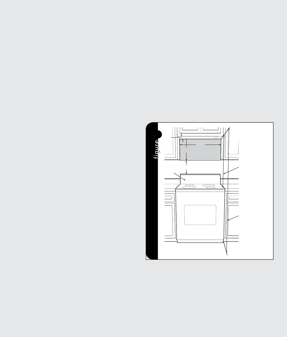 parte frontal del horno hacia la parte inferior del gabinete.