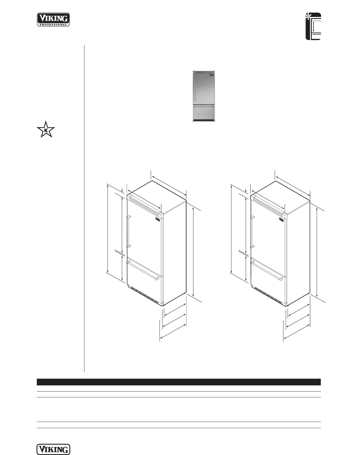 • For use with installation of two 36”W. bottom-mount refrigerator/freezers
