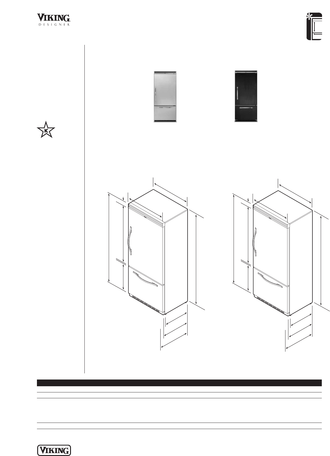 • For use with Designer built-in refrigerator/freezers