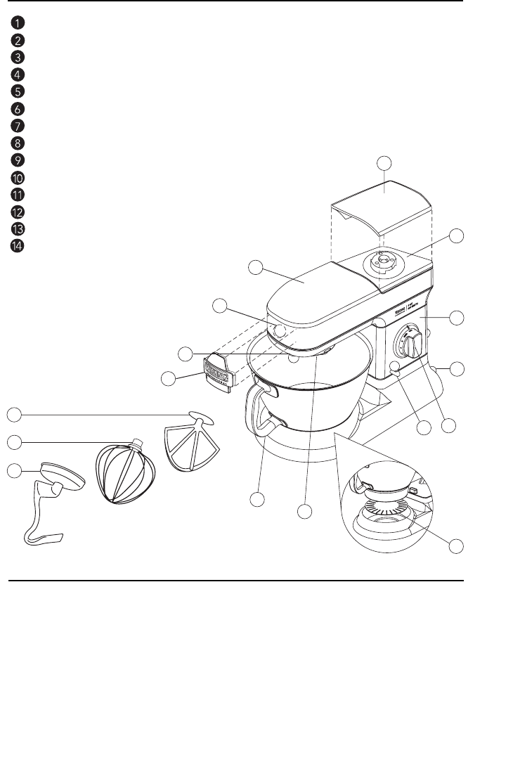 • Stainless steel dough Hook- For yeast mixtures such as breads.