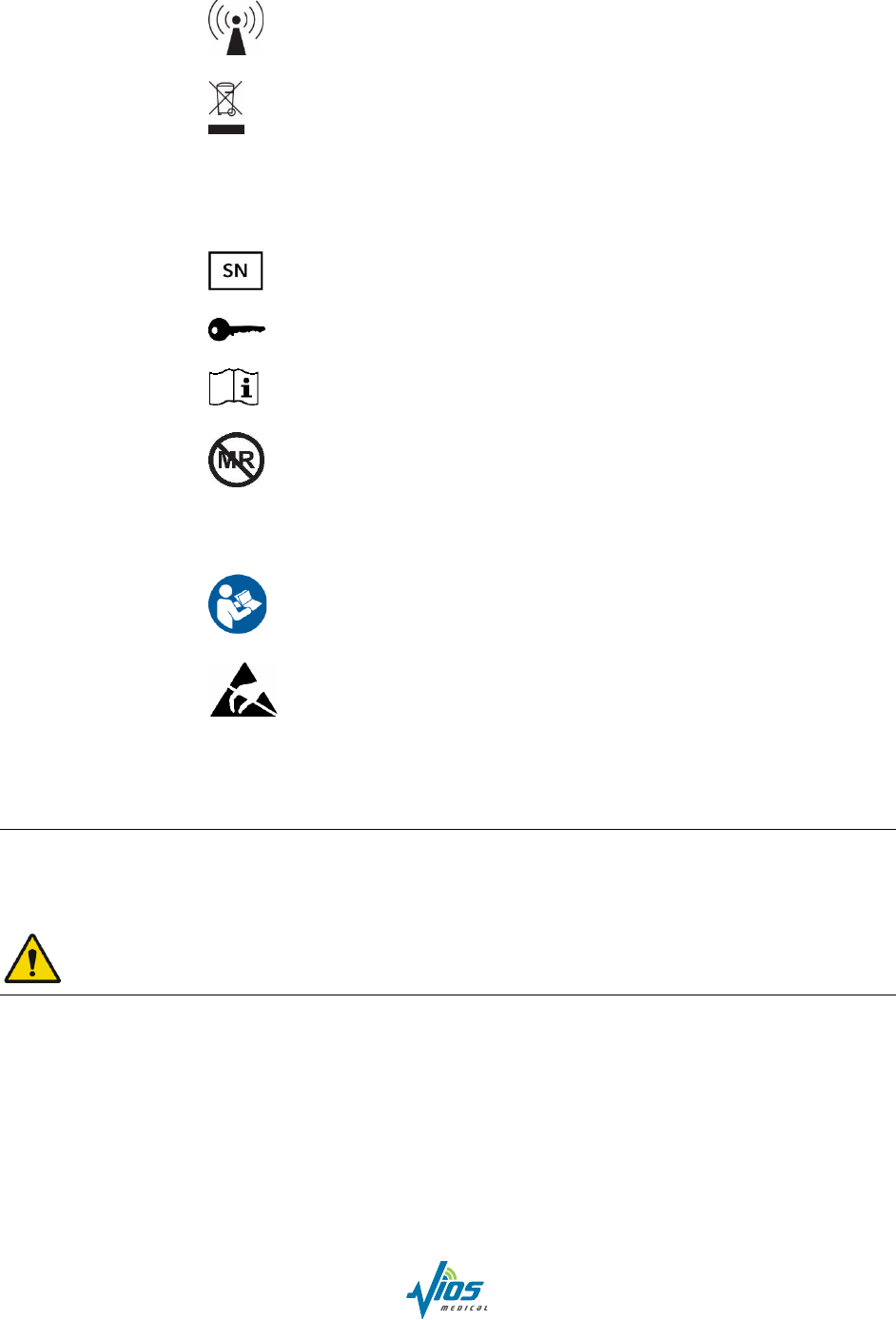Remove the Vios Chest Sensor and Adapter from any patient prior to magnetic resonance imaging (MRI)