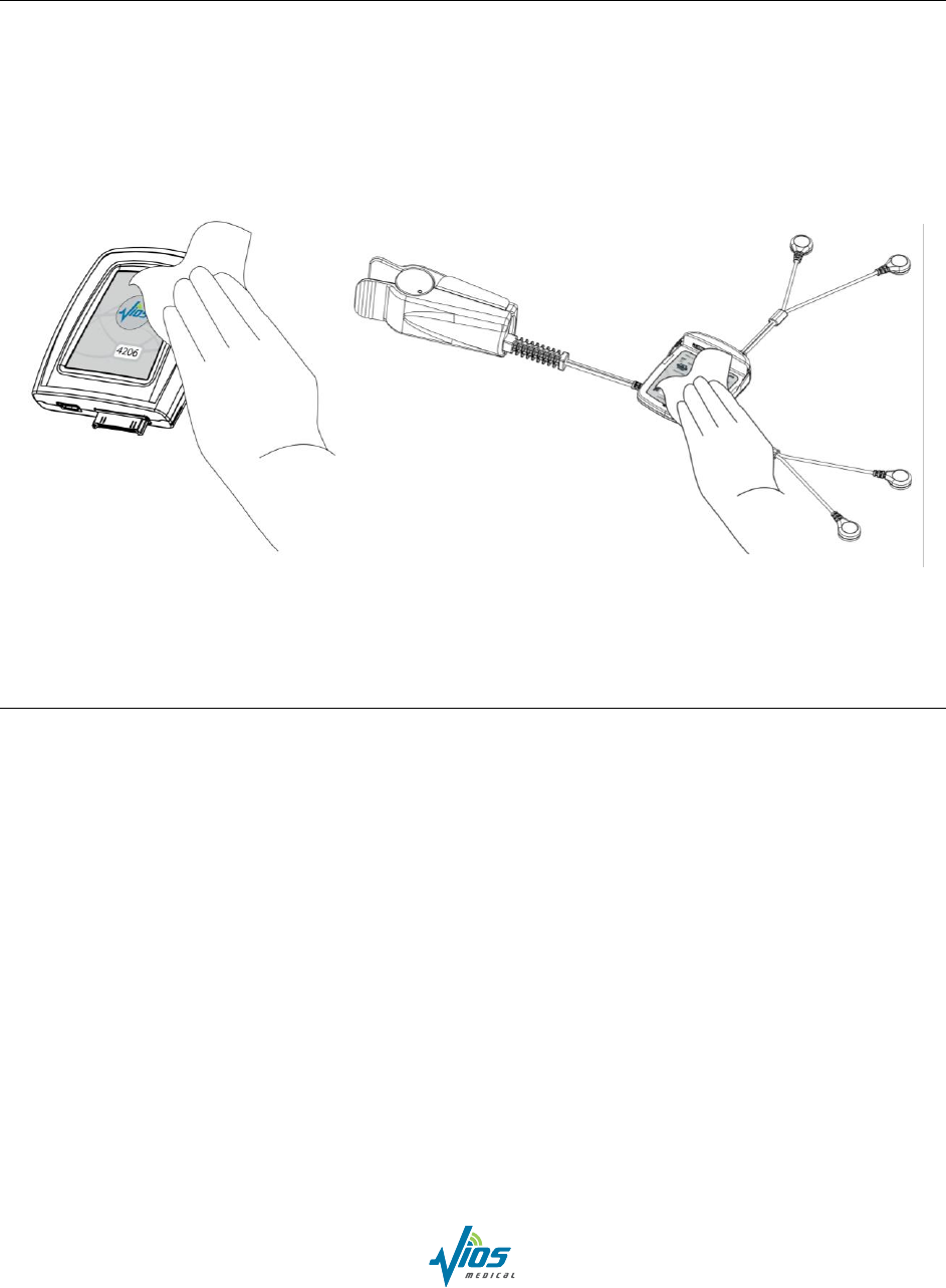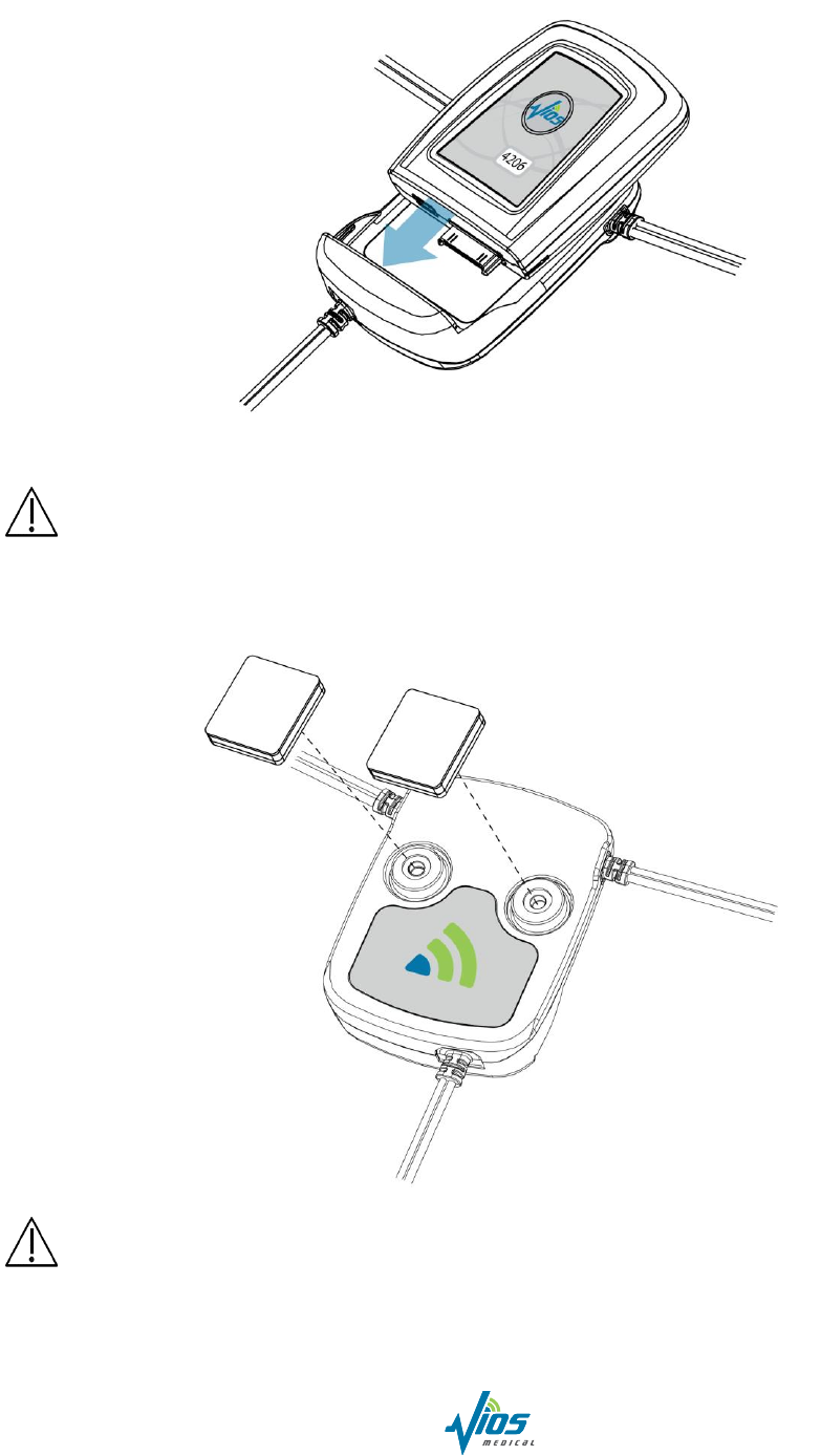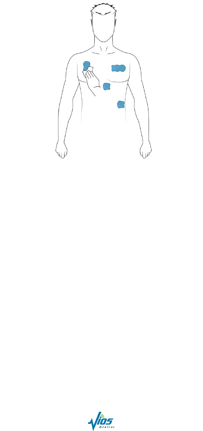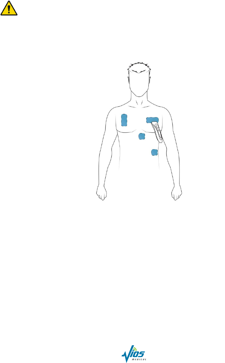 Do not apply the Vios Chest Sensor, Adapter, or electrodes on breached or compromised skin surfaces or on