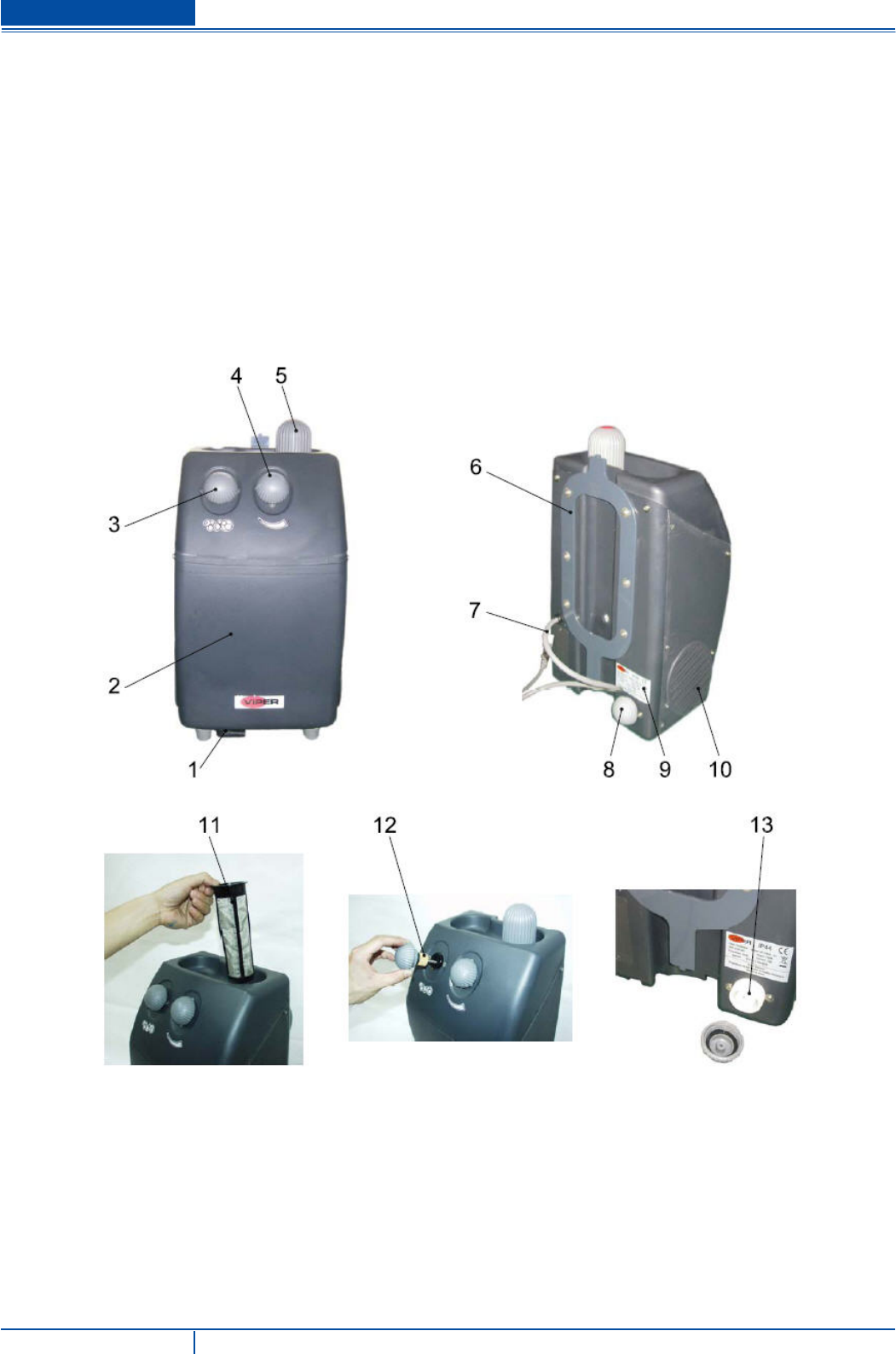 Mix the Viper “508” carpet cleaner with water (Ratio 1:15). Pour into the Solution Inlet (5) gently.
