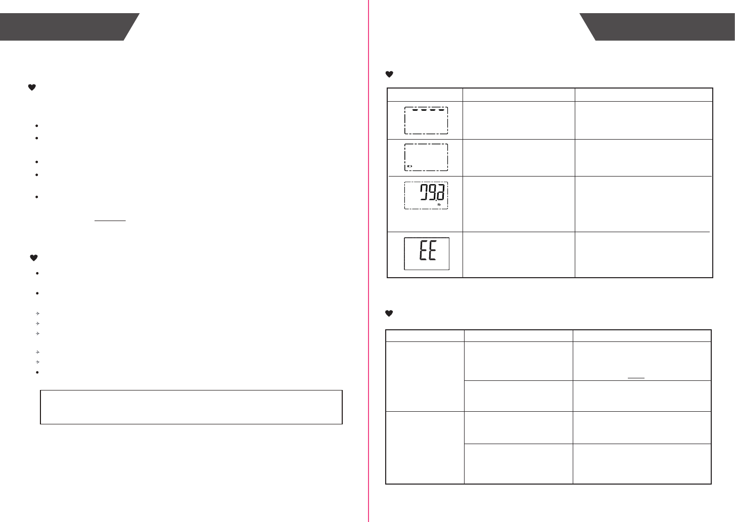 To ensure your safety as well as the service life of your scale, please avoid using