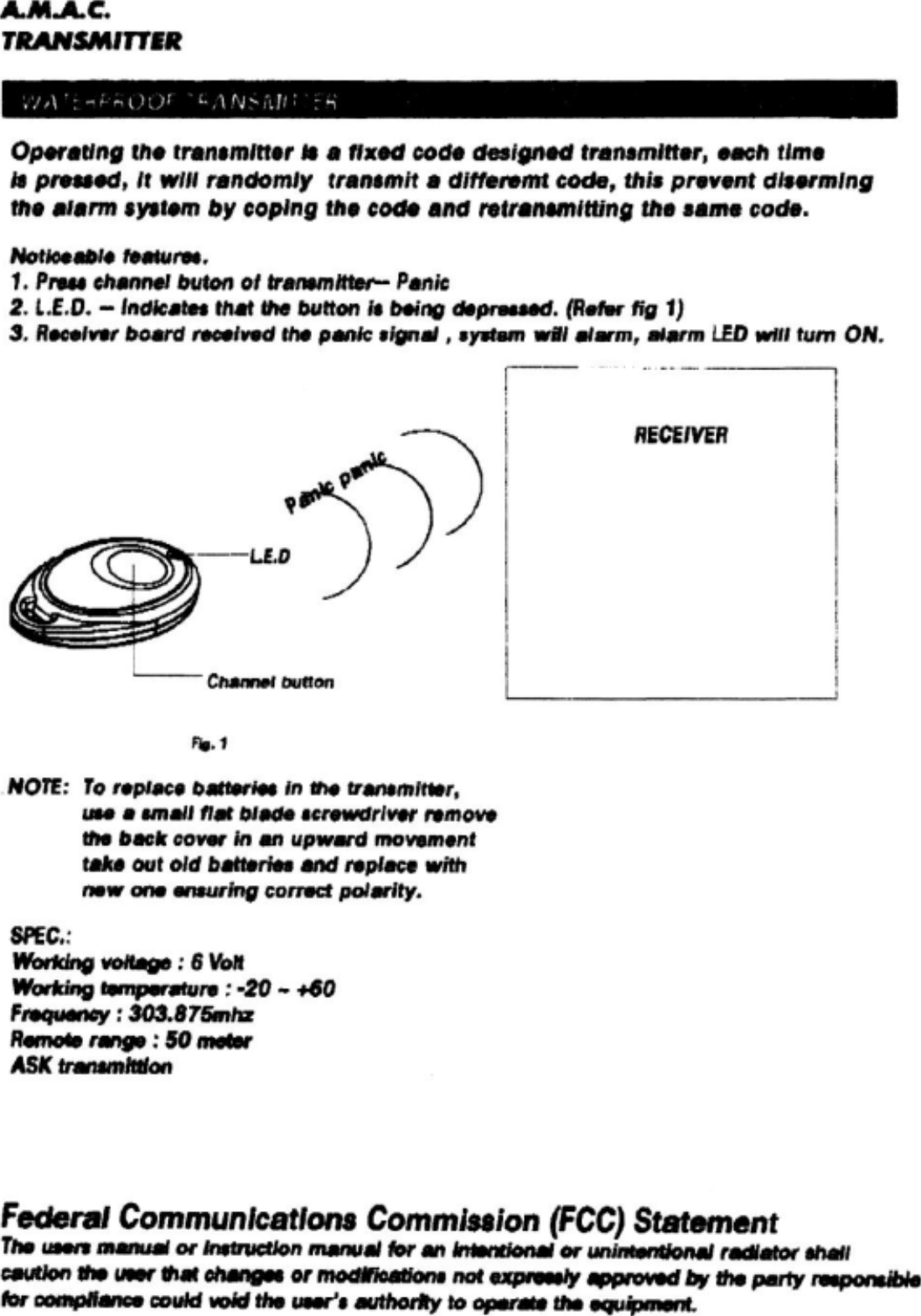 Vision Automobile Electronics Co AMAC Remote Control Transmitter User Manual