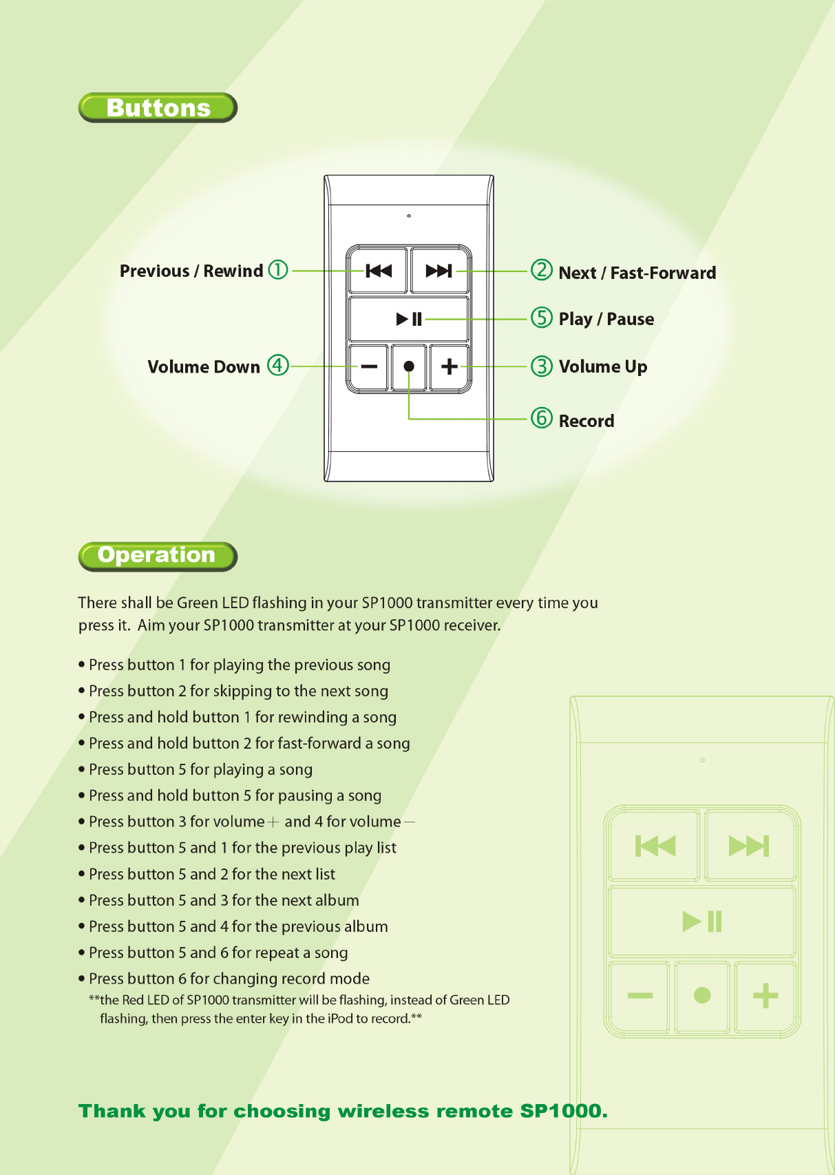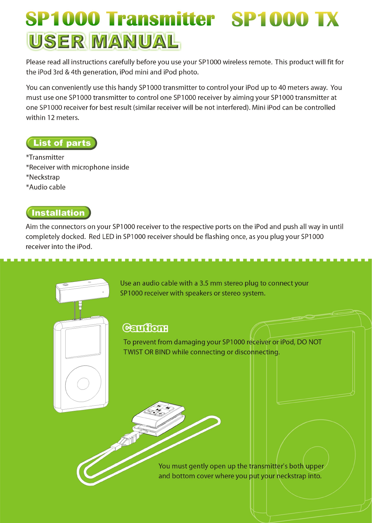 Vision Automobile Electronics Industrial Co Ltd SP1000 Transmitter Users Manual