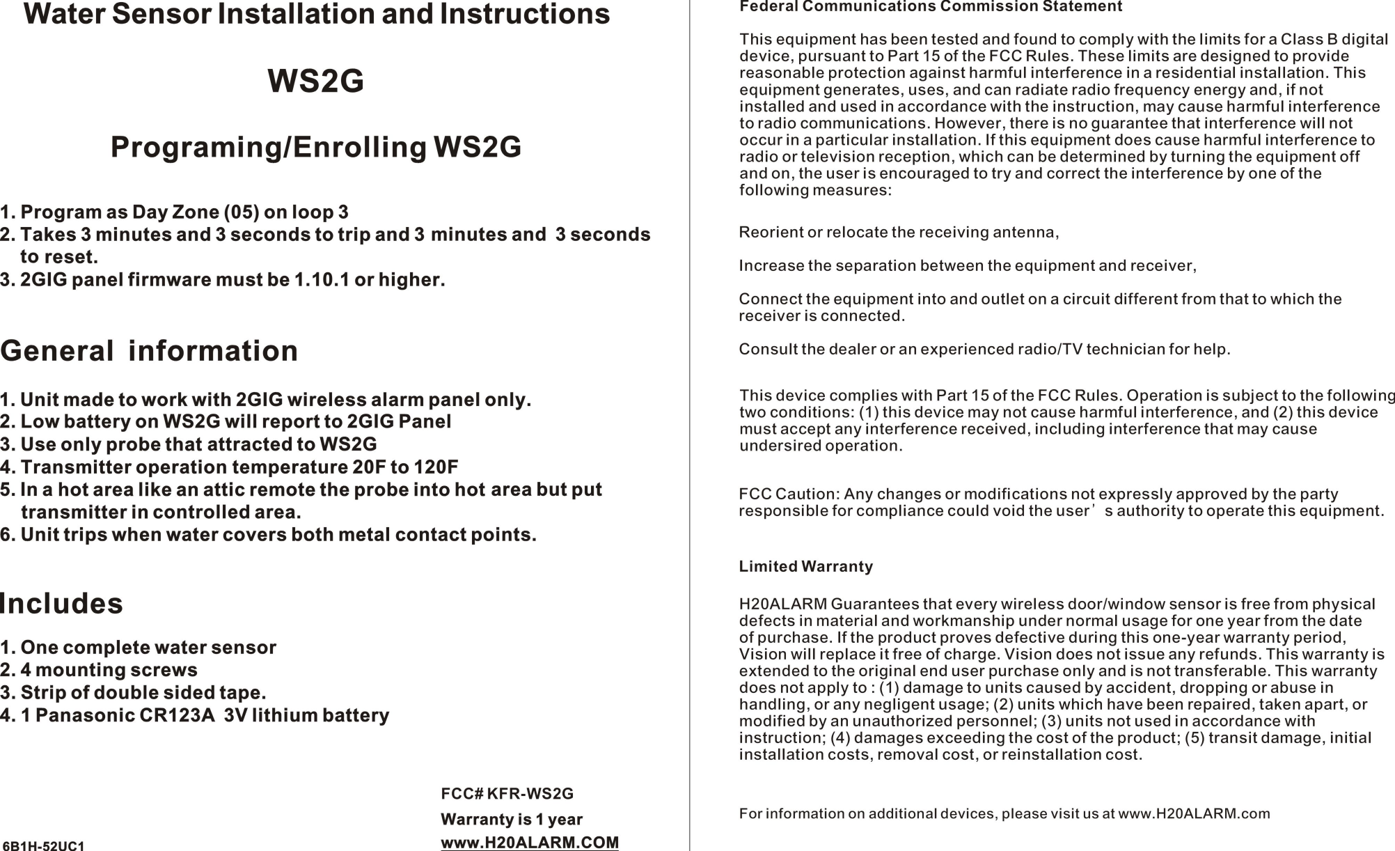 Vision Automobile Electronics Co WS2G Water Sensor User Manual Manual