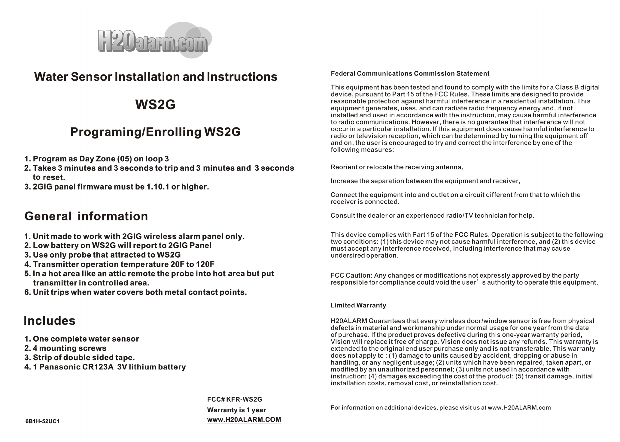 Vision Automobile Electronics Co WS2G Water Sensor User Manual Manual