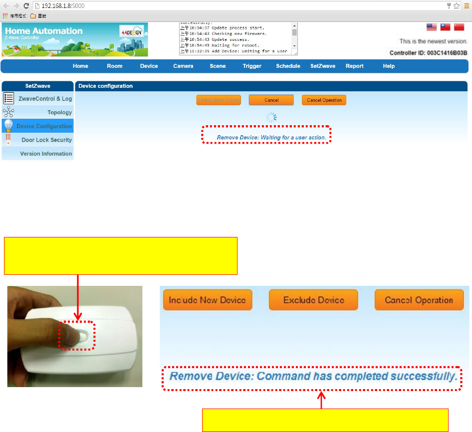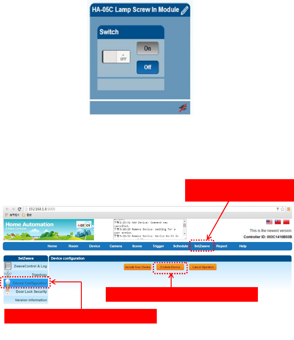 You also can delete a controlled Z-Wave device in this scenario by clicking on the