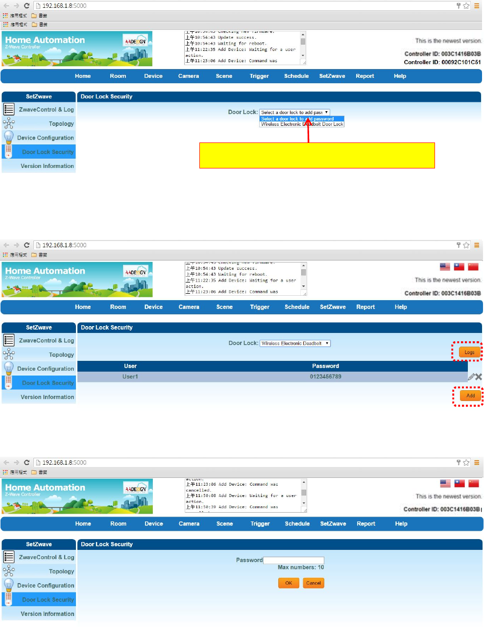 You can click on the “Log” button to get the door lock records as below. The maximum