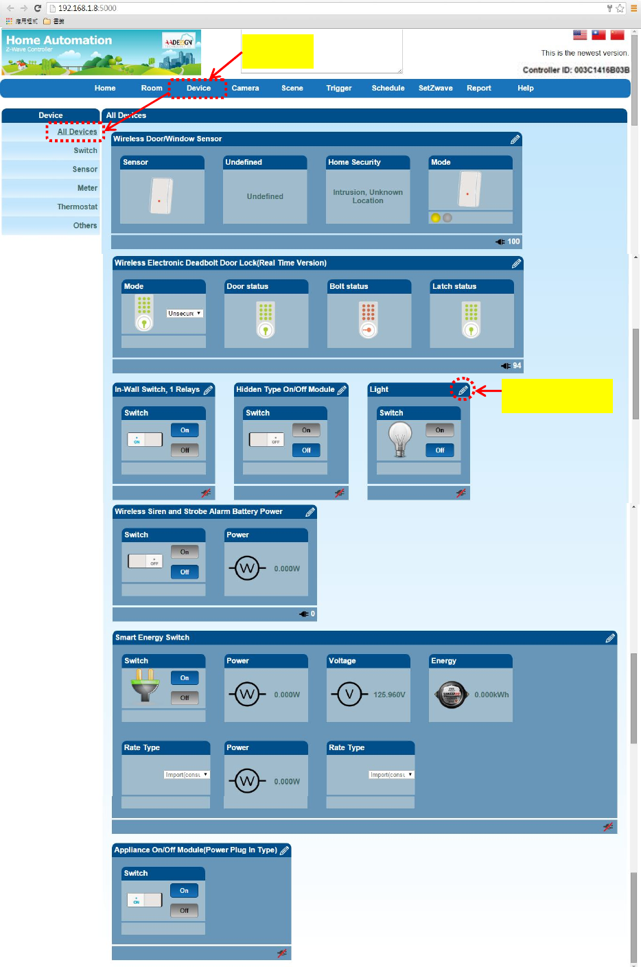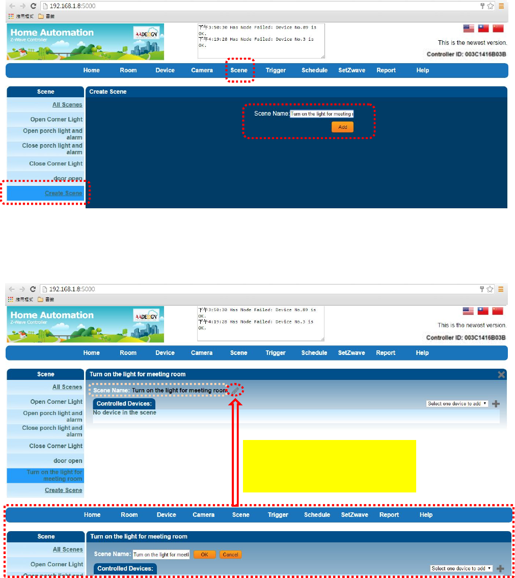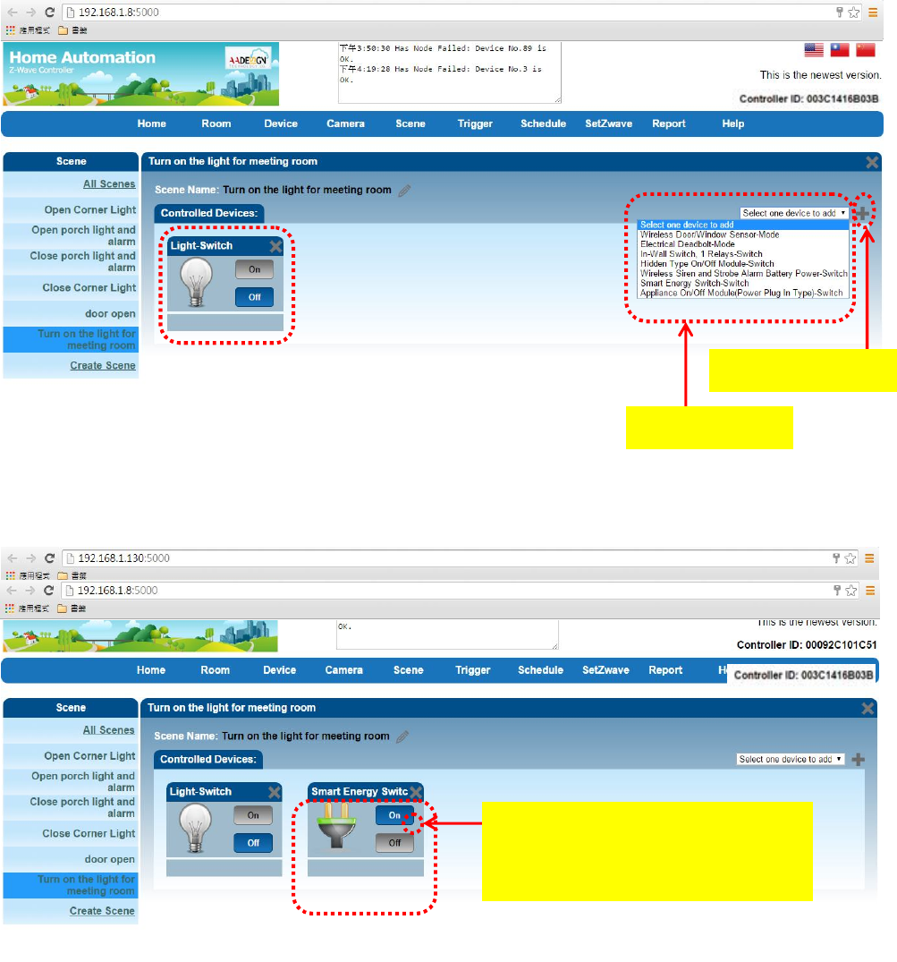 Then add controlled Z-Wave devices in this scenario that shown as below. For
