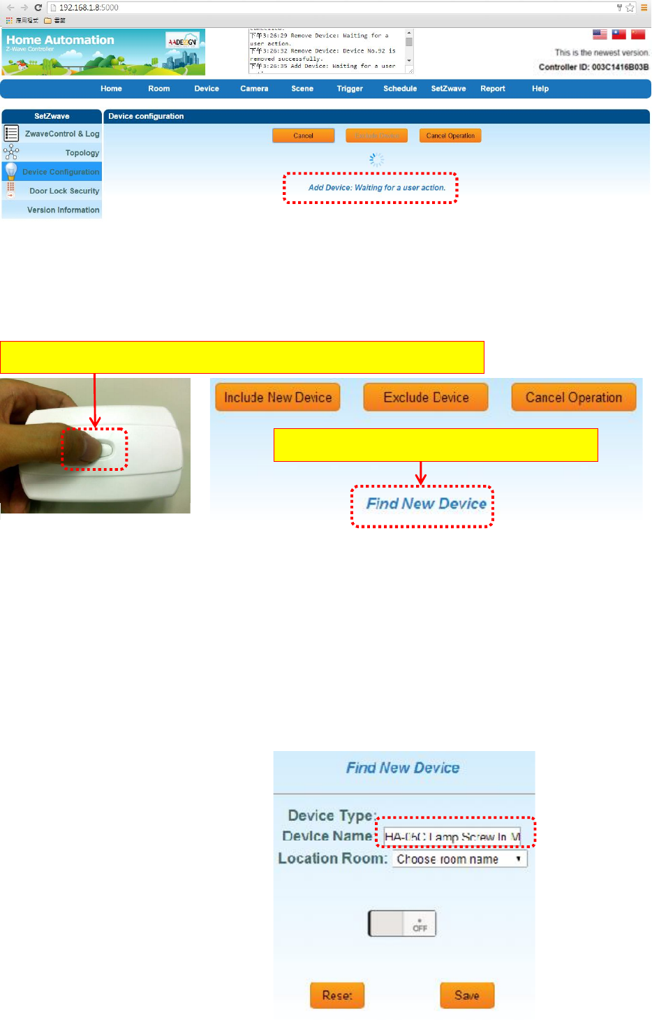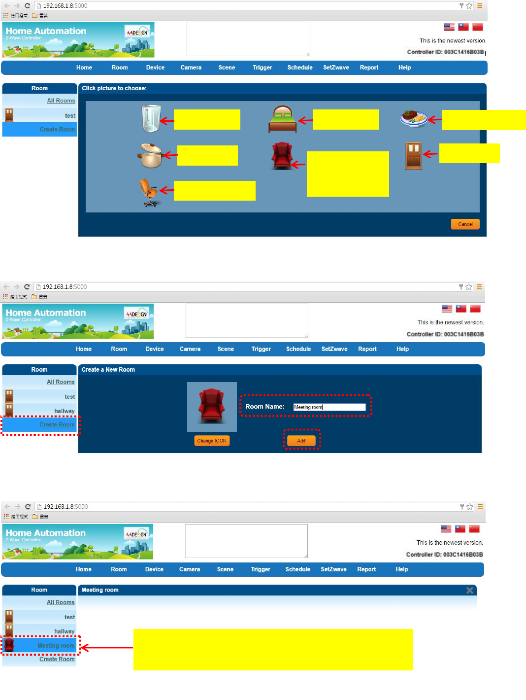 device in this room. The setting procedure is described as following: