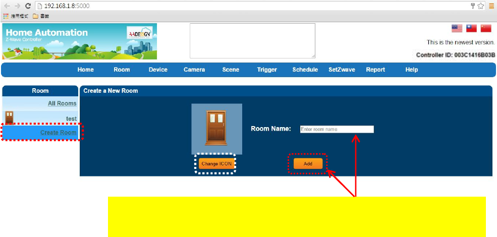 Please input the room name. Then click on “Add” button to create a
