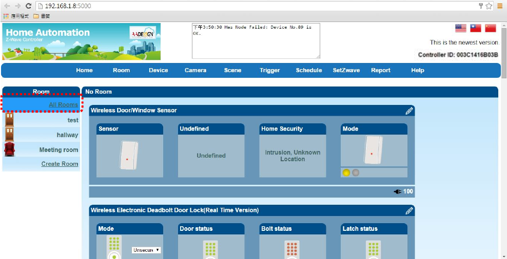 Z-Wave devices on the screen.