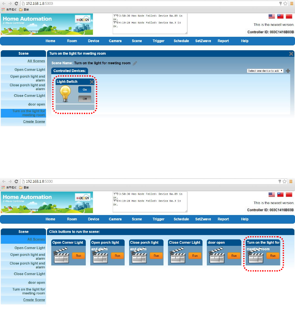 Then add controlled Z-Wave devices in this scenario that shown as below. For