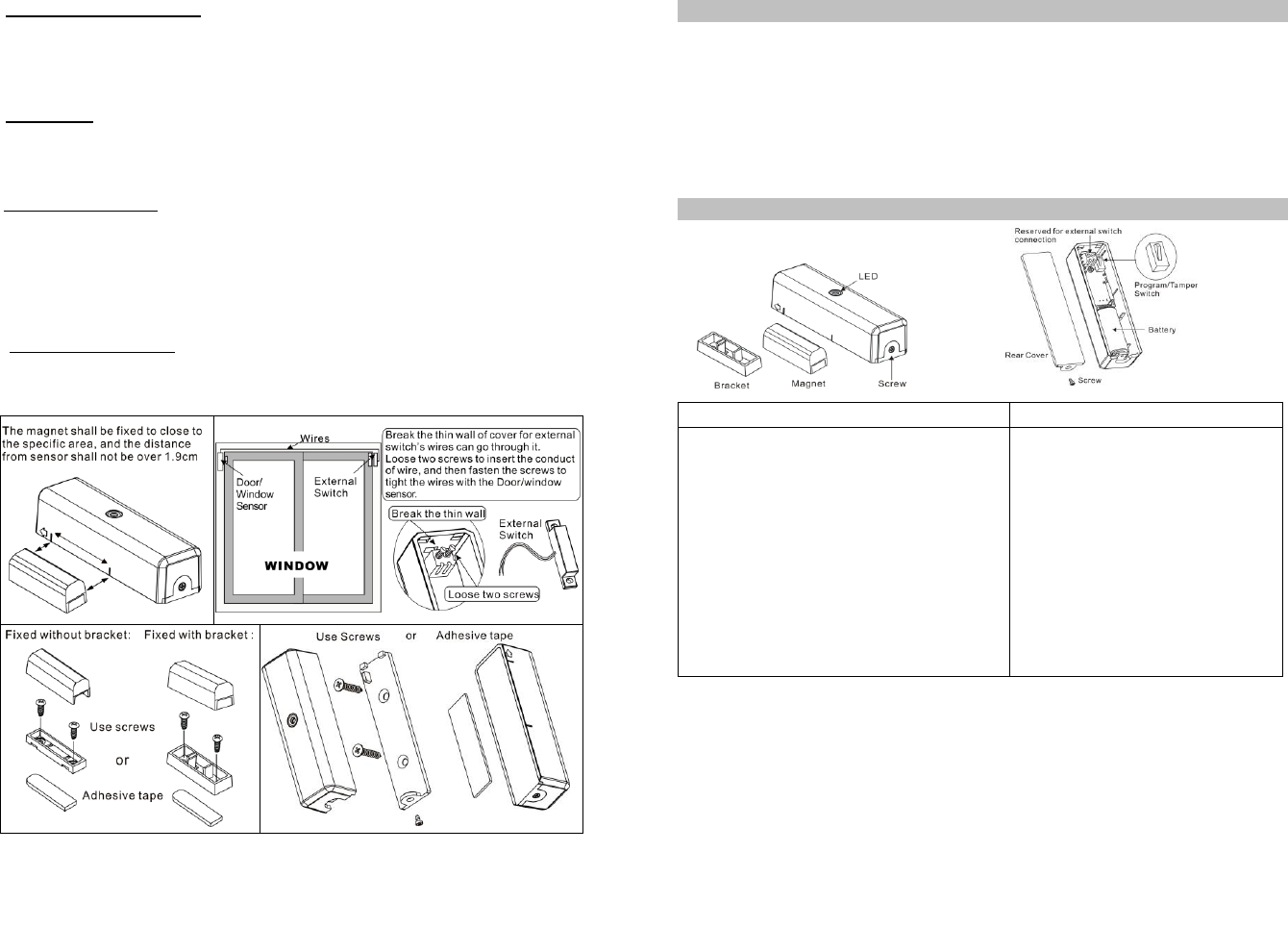 Vision Automobile Electronics Industrial Co Ltd Wireless Door/Window Sensor INSTALLATION GUIDE