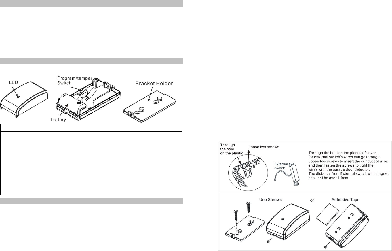 Z-Wave™ enabled networks. This detector monitors garage door and send Z-Wave™