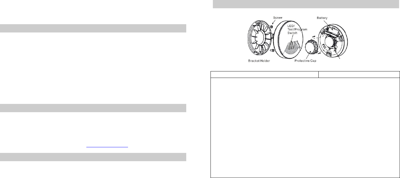 9. Self-Protection Mode: If the detector removed from bracket, the detector will send a
