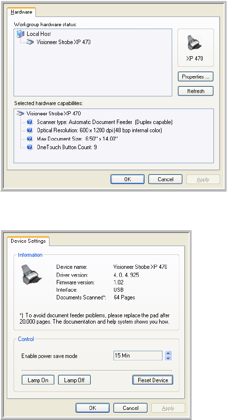 PaperPort Properties 41, 42