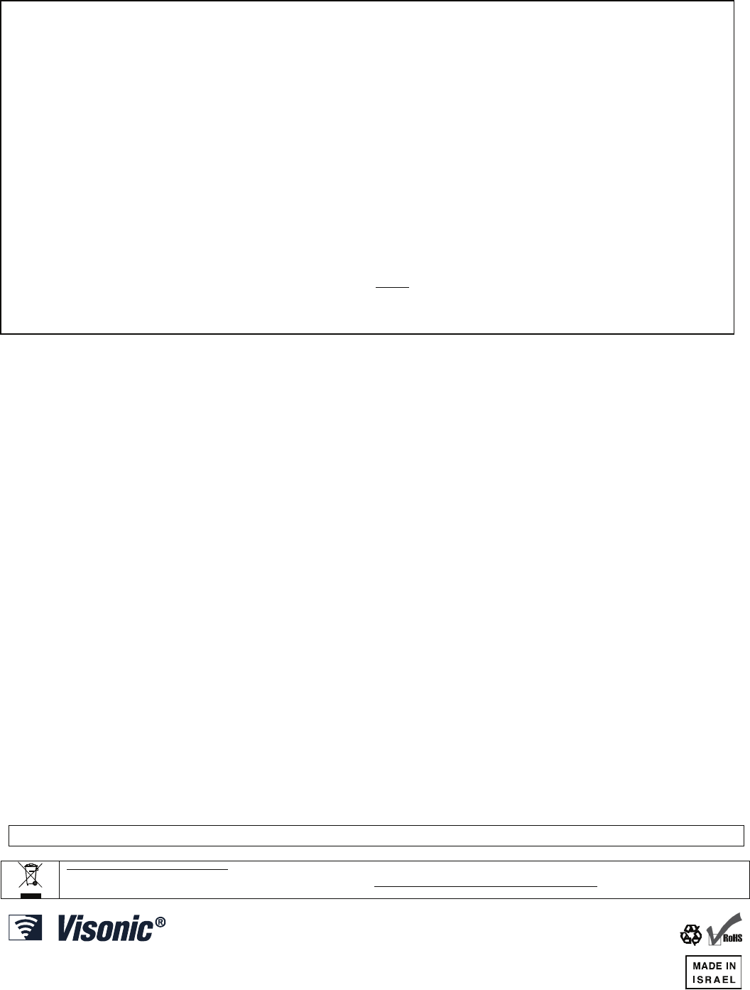 ©VISONIC LTD. 2010 DISC MCW D-302924 (REV. 0, 1/11)